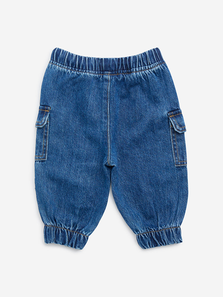 HOP Baby Blue Cargo-Style Mid-Rise Denim Joggers
