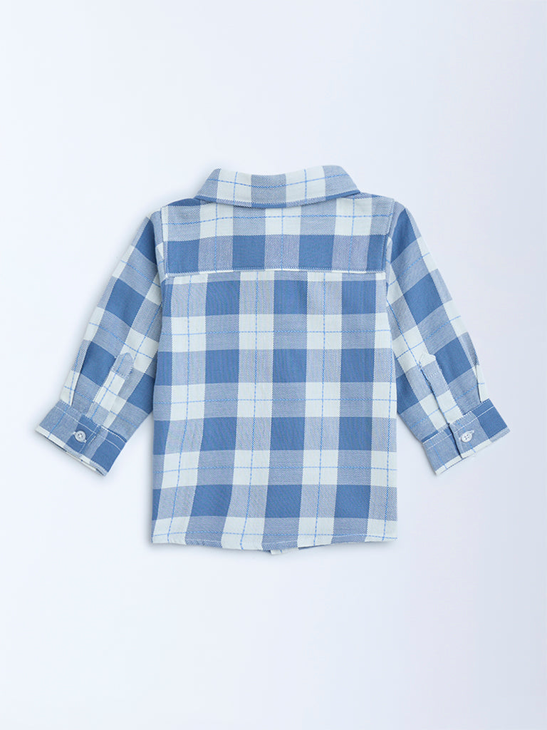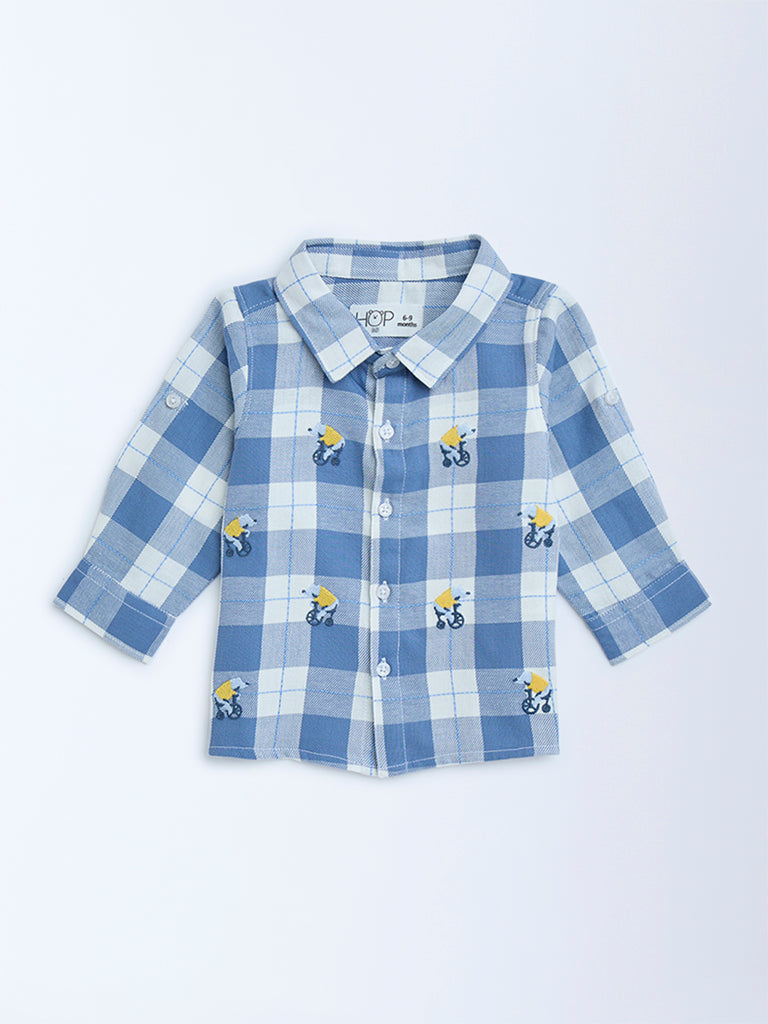 HOP Baby Blue Checks Design Cotton Shirt