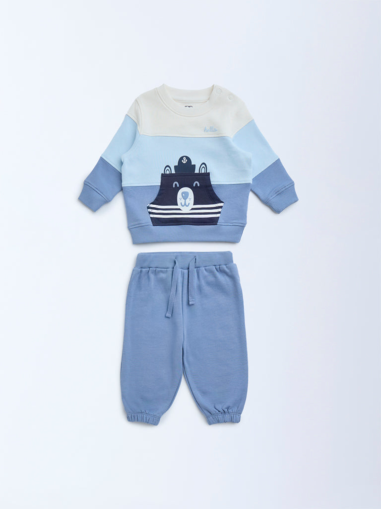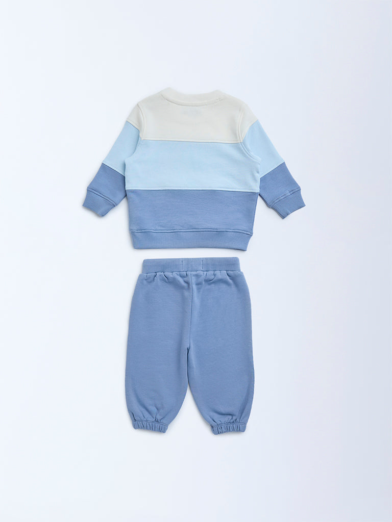 HOP Baby Blue Color-Blocked Cotton Sweatshirt and Pants Set