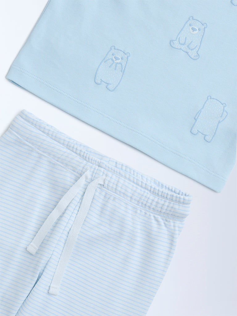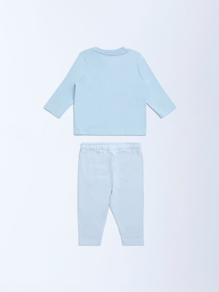HOP Baby Blue Cotton T-Shirt with Pants Set
