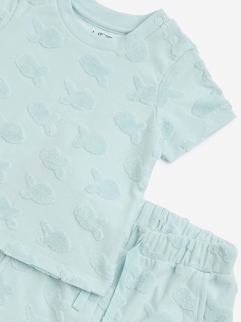 HOP Baby Blue Embroidered Cotton-Blend T-Shirt & Shorts Set