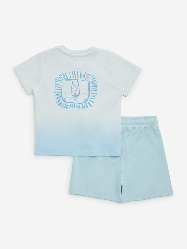 HOP Baby Blue Printed Cotton T-Shirt and Shorts