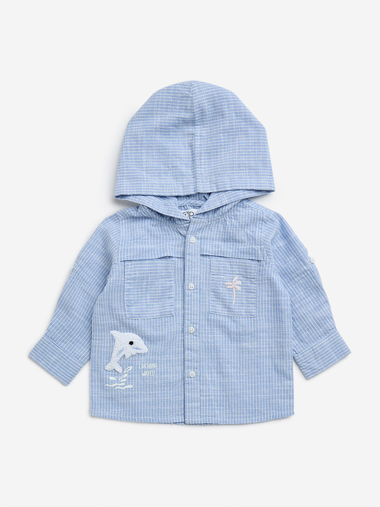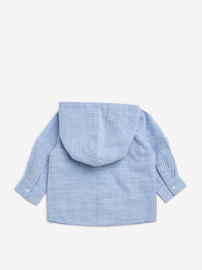 HOP Baby Blue Striped Cotton Hooded Shirt