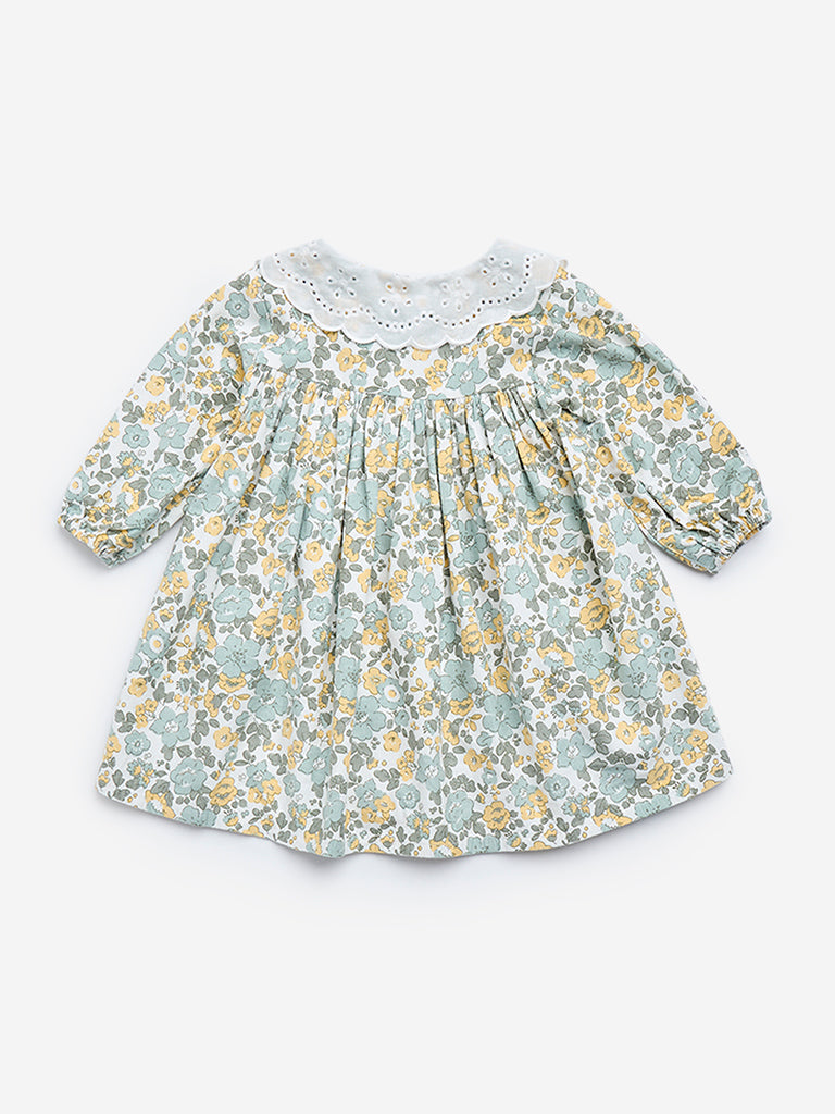 HOP Baby Green Floral Print Fit-and-Flare Cotton Dress