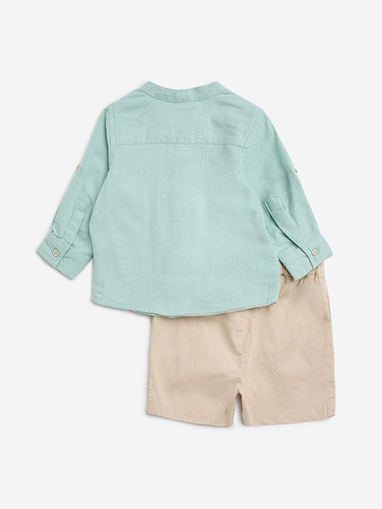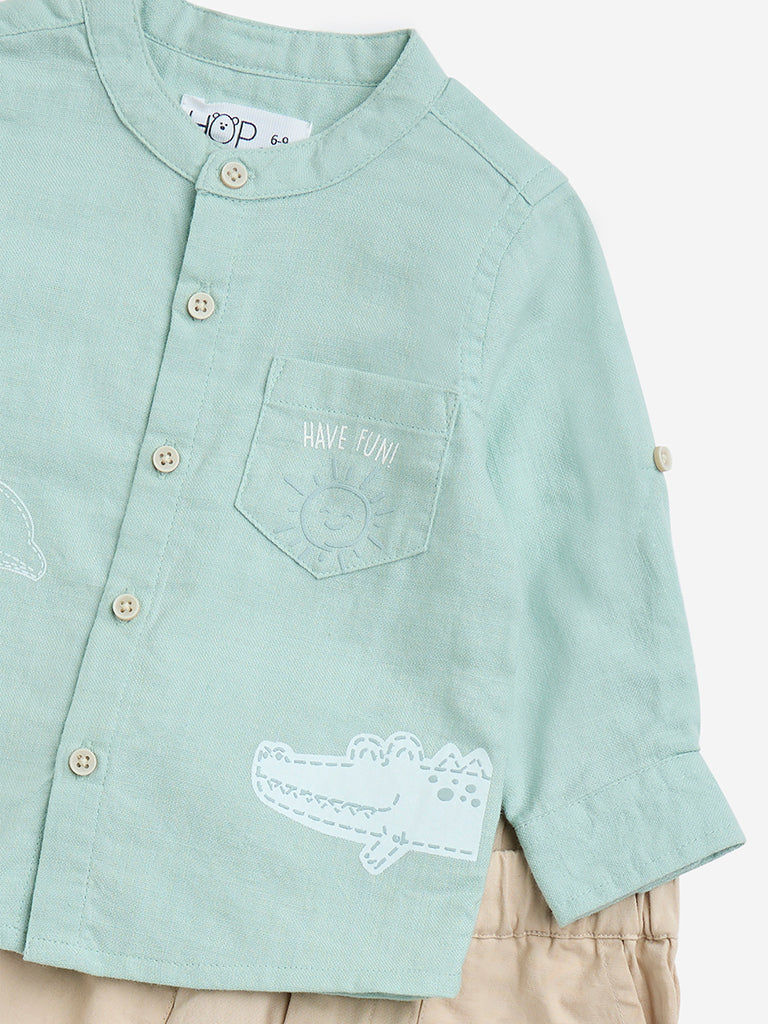 HOP Baby Green Printed Cotton Shirt with Shorts Set