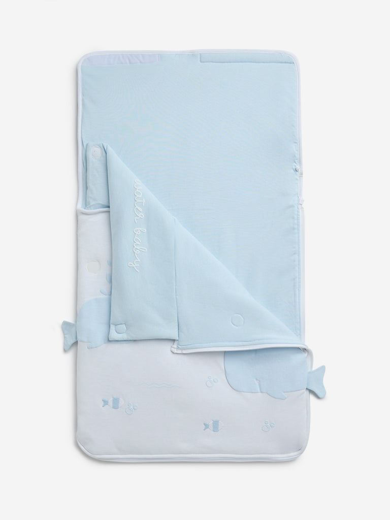 Snuggle your baby in the light blue sleeping bag from HOP Baby. Highlighted by an adorable whale design and crafted from pure cotton. it ensures ultimate comfort and charm.