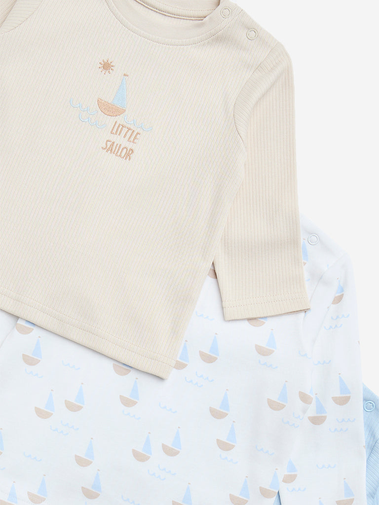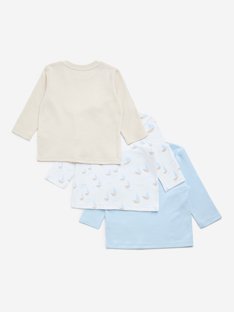 HOP Baby Light Blue Boat-Themed Cotton T-Shirts – Pack of 3