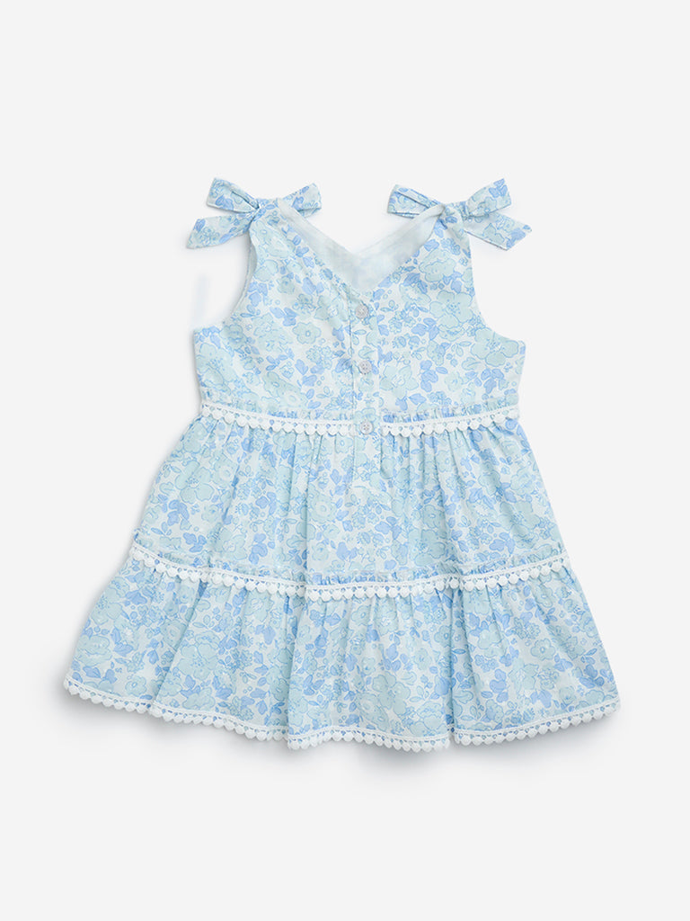 HOP Baby Light Blue Floral Design Cotton Tiered Dress