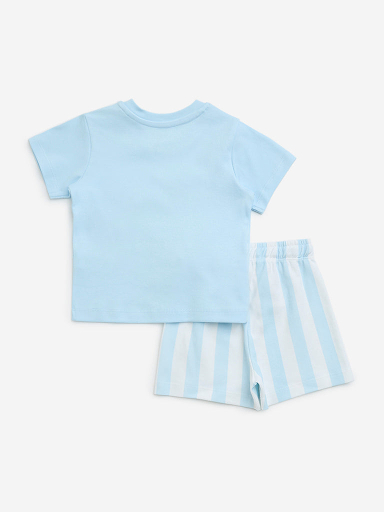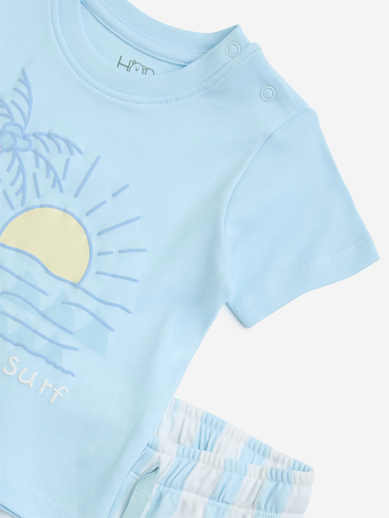 HOP Baby Light Blue Printed Cotton T-Shirt & Shorts Set