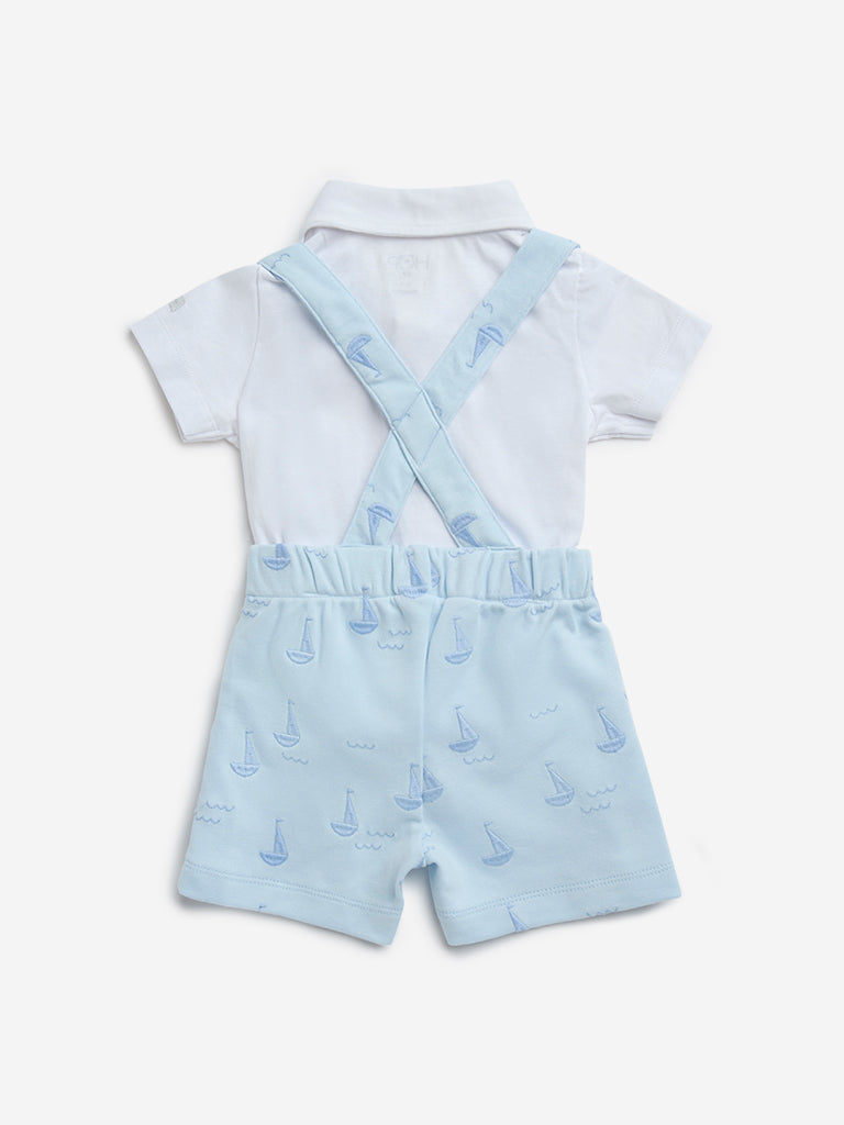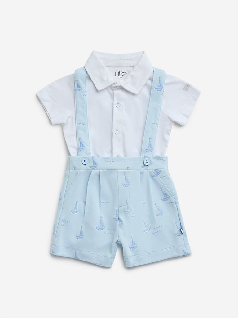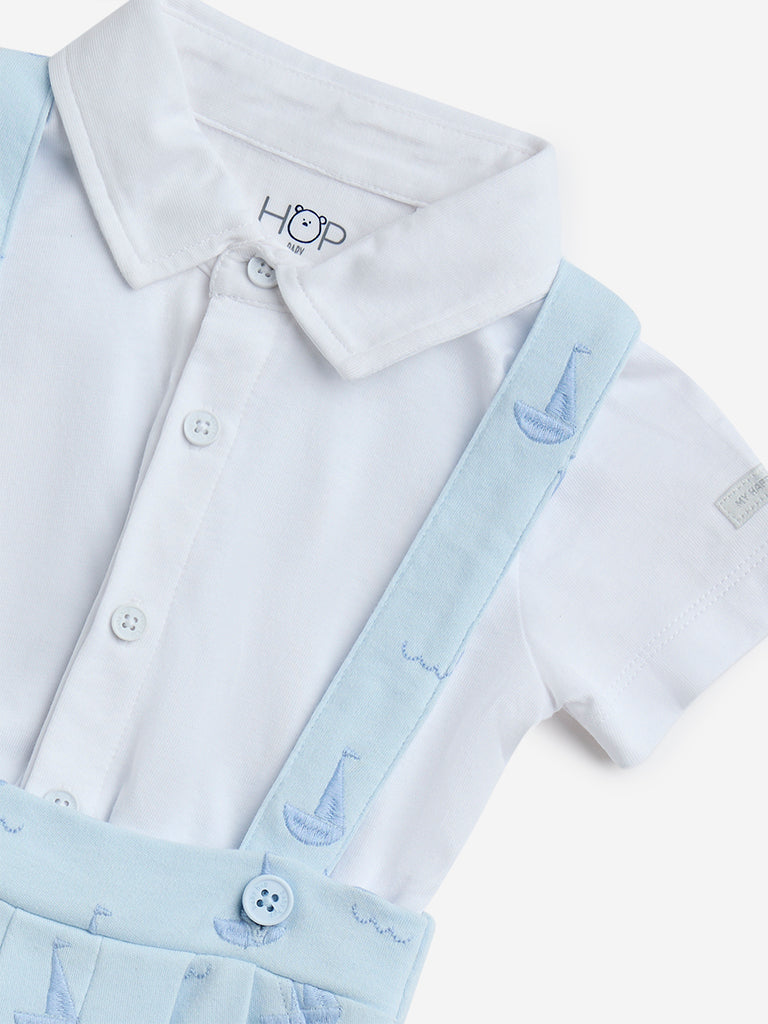 HOP Baby Light Blue Sea-Themed Cotton Shirt and Dungaree Set