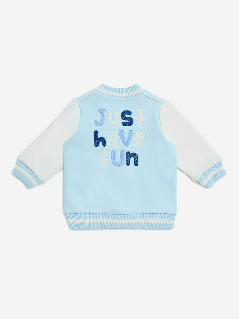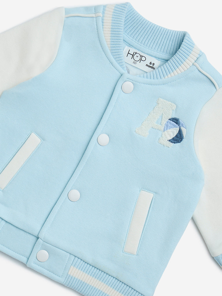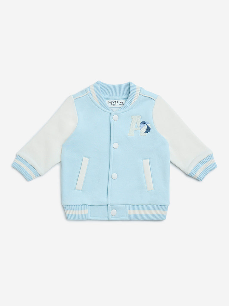 HOP Baby Light Blue Text Design Cotton-Blend Varsity Jacket