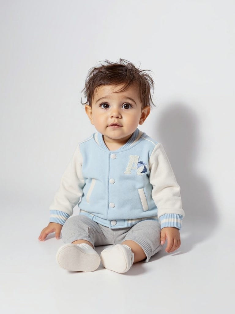 Be the first to review “HOP Baby Light Blue Text Design Cotton-Blend Varsity Jacket”