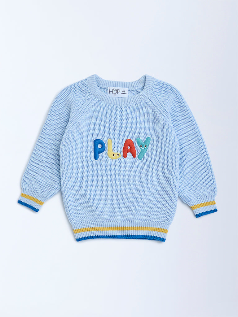 HOP Baby Light Blue Text Detailed Sweater