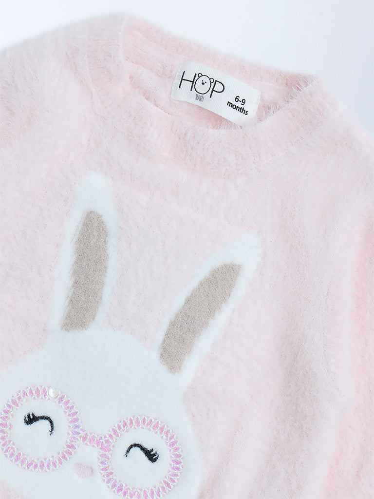 Snuggle your little one in comfort with this light pink sweater from HOP Baby. Featuring an adorable bunny design on the front. it’s crafted from a sumptuous fabric with a cosy fleece lining. The crew neck and full sleeves make it perfect for keeping warm on breezy days or during cuddle time.