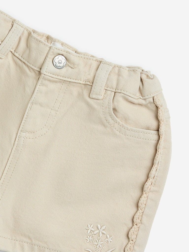 Introducing these light taupe shorts from HOP Baby crafted from pure cotton for all-day comfort. Designed with a snug high-rise fit. they include multiple pockets and a buttoned waist. belt loops and a secure zipper closure for a comfortable fit.