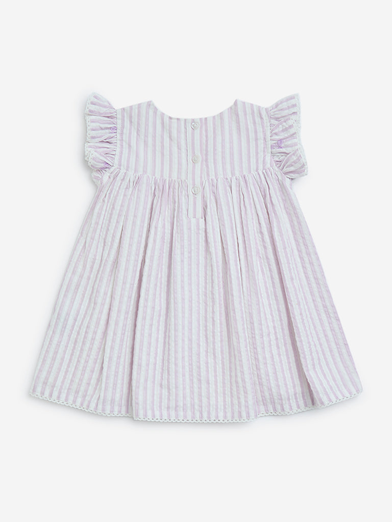 HOP Baby Lilac Seersucker Striped Cotton Empire-Line Dress