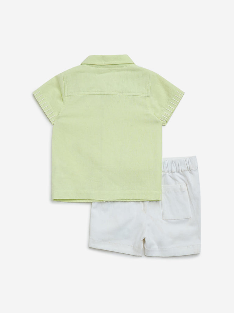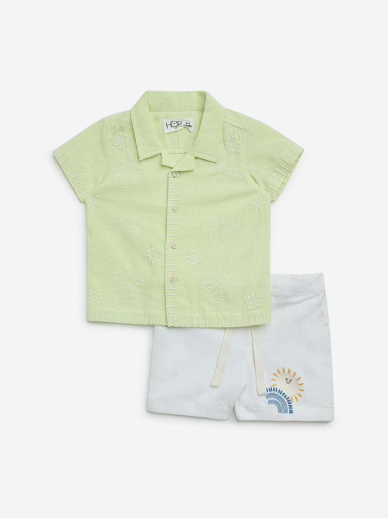 HOP Baby Lime Cotton-Blend Shirt with Shorts Set