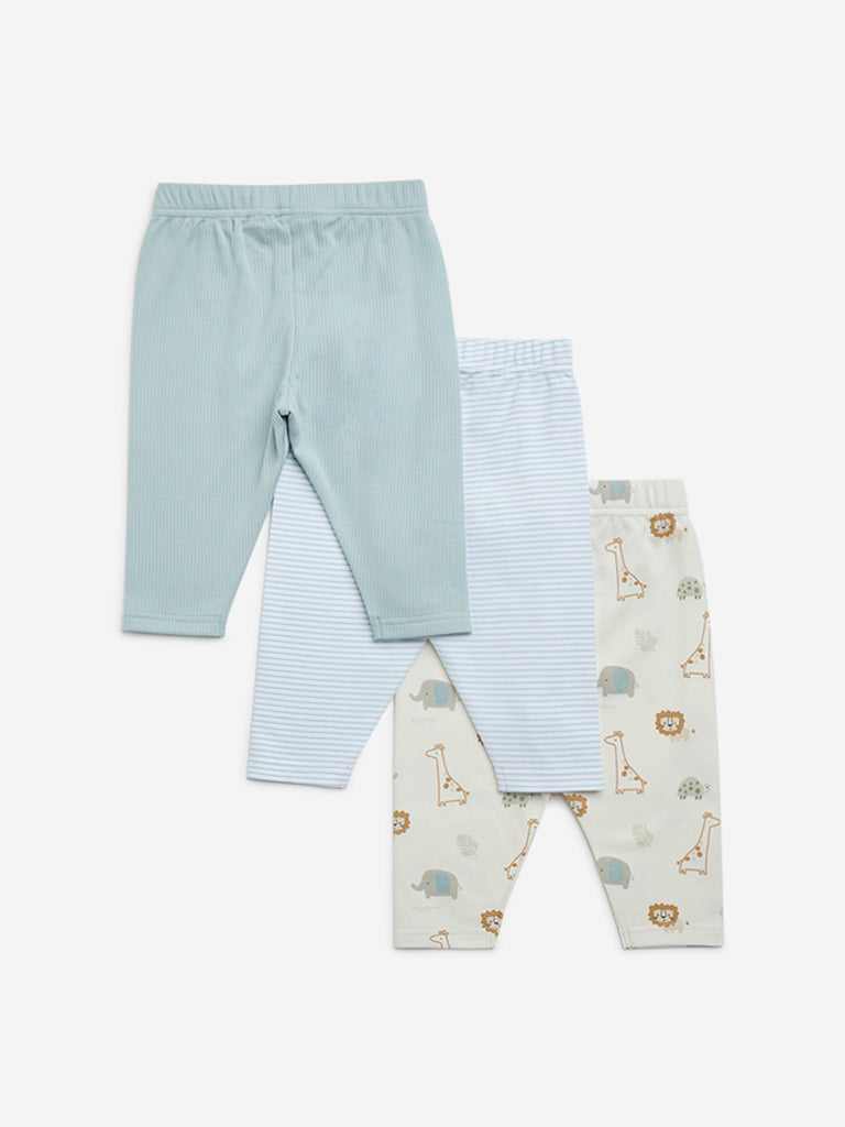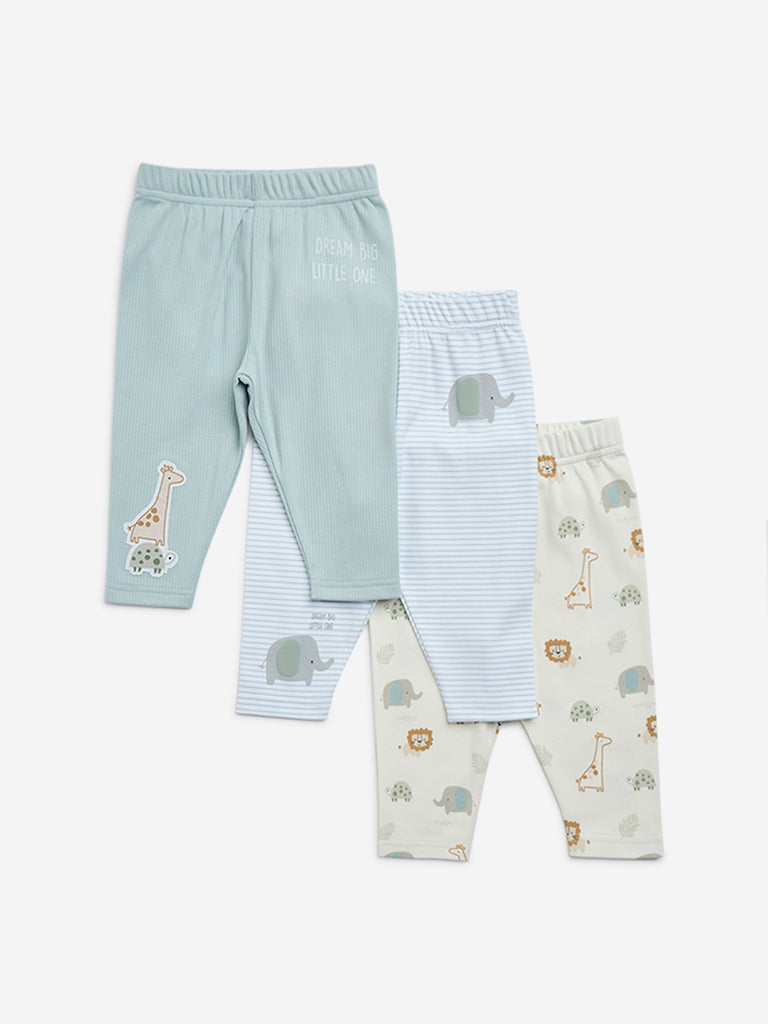 HOP Baby Mint Printed Cotton Pants – Pack of 3