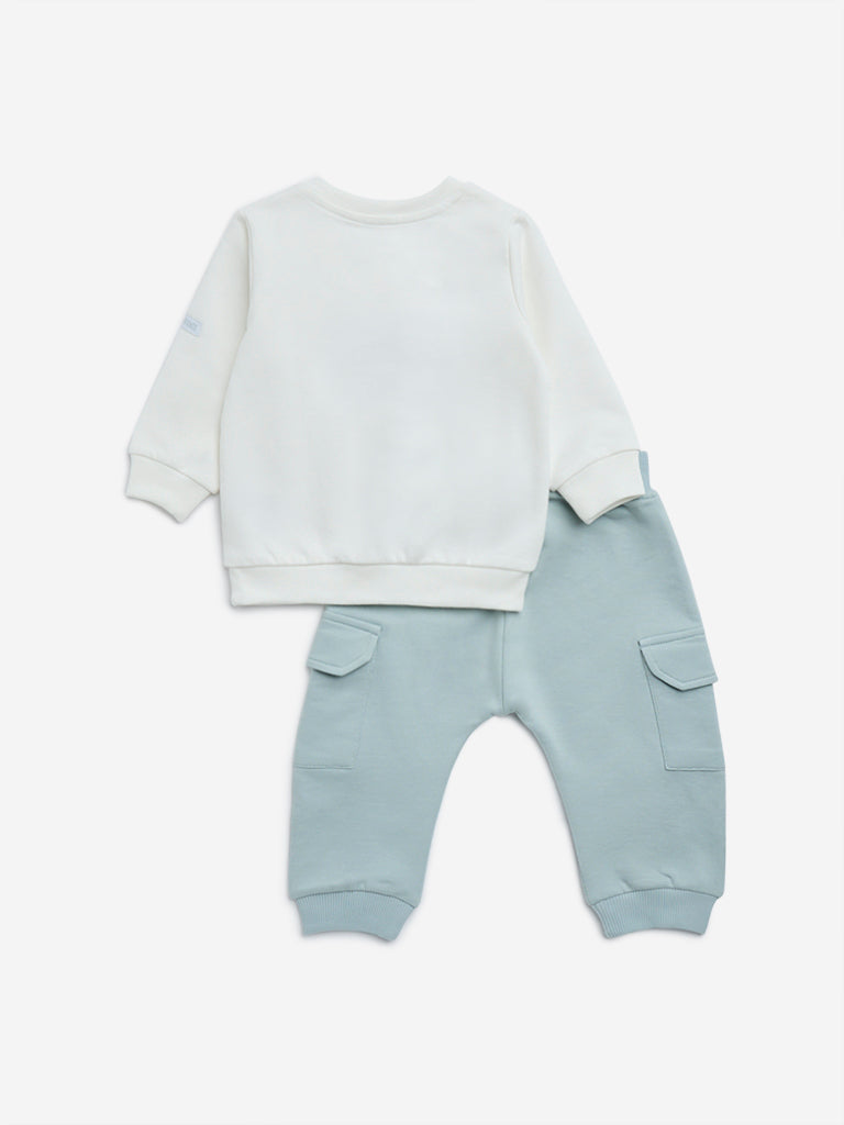 HOP Baby Mint Printed Cotton Sweatshirt and Joggers Set