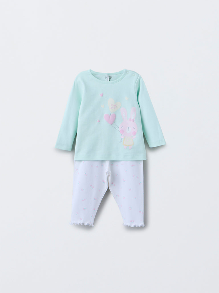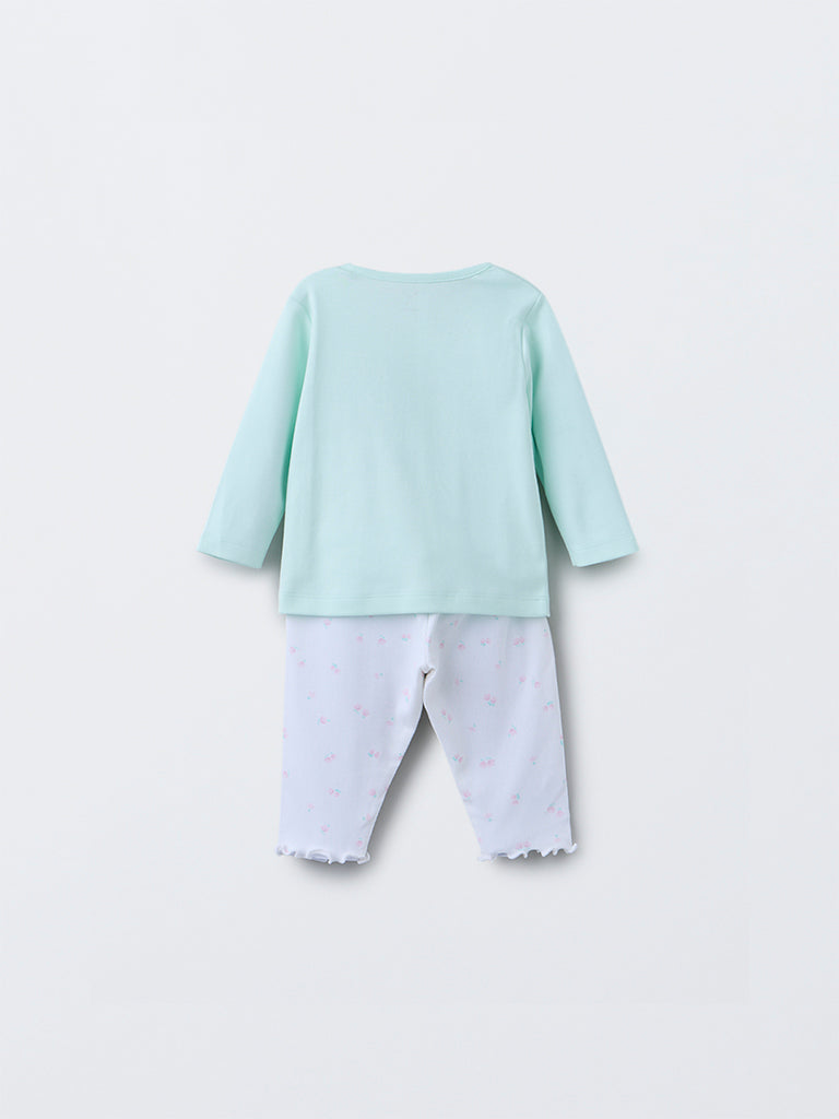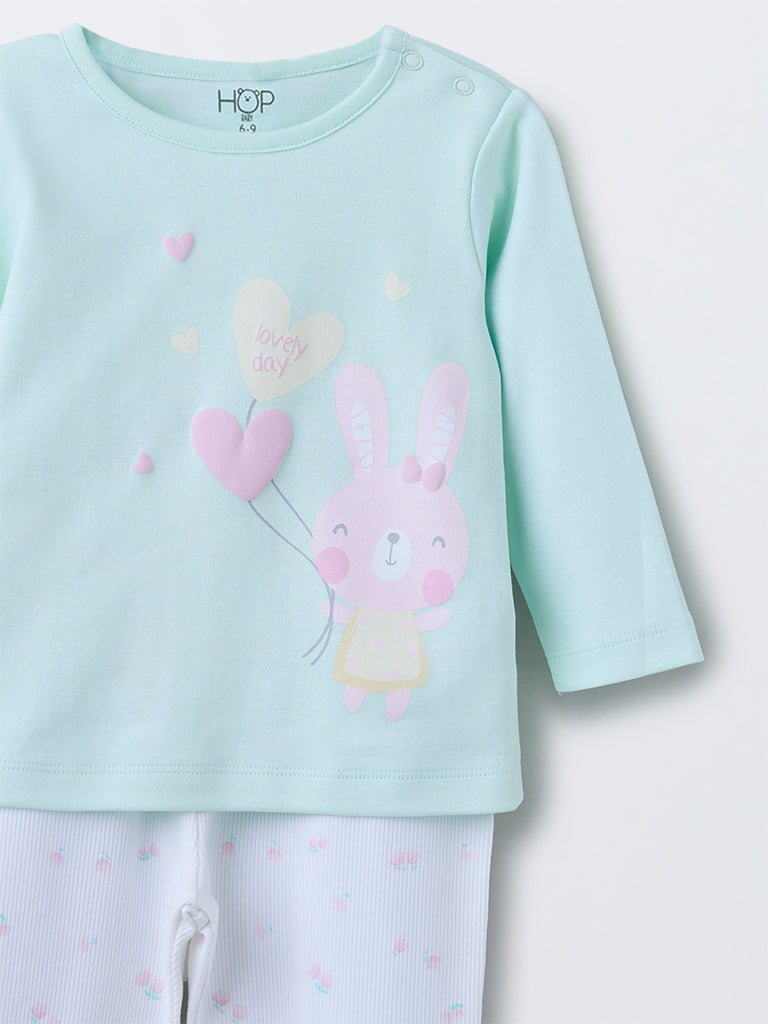HOP Baby Mint Printed Cotton T-Shirt with Pants Set