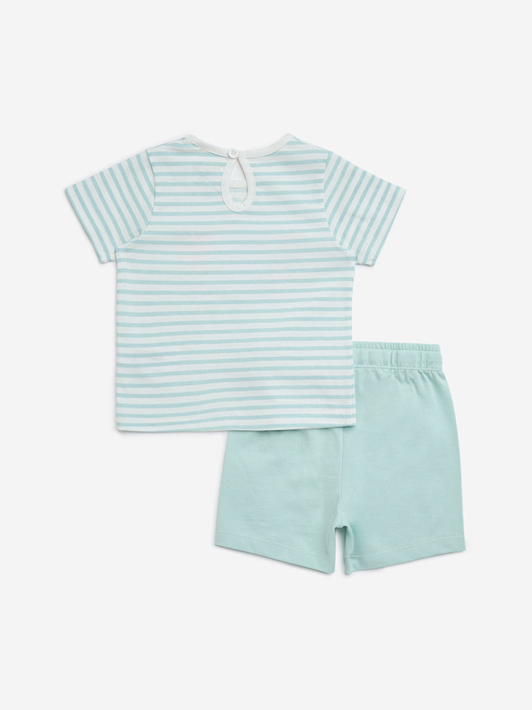 HOP Baby Mint Stripe Printed Cotton T-Shirt with Shorts Set
