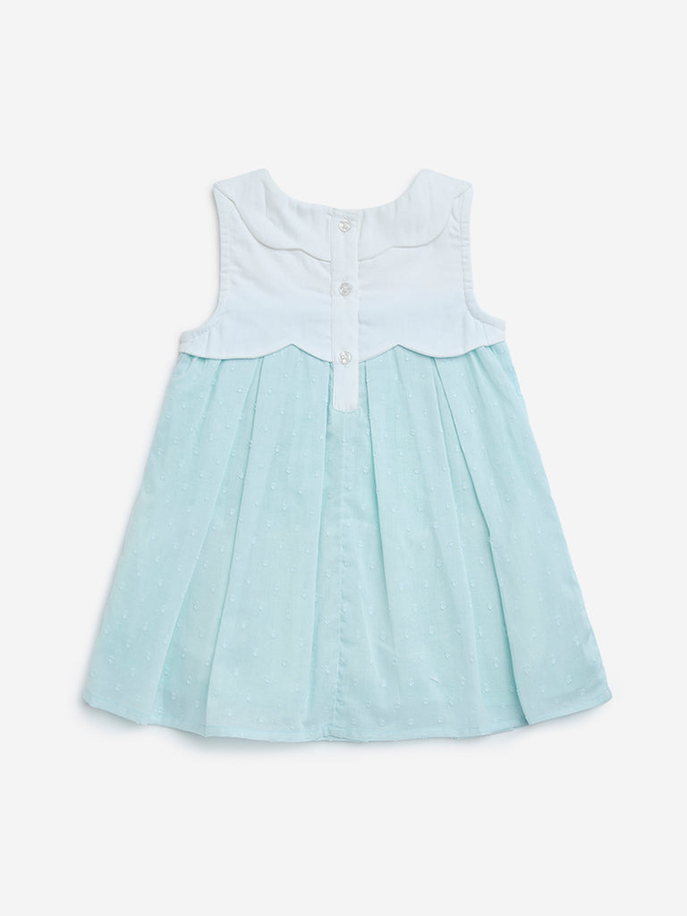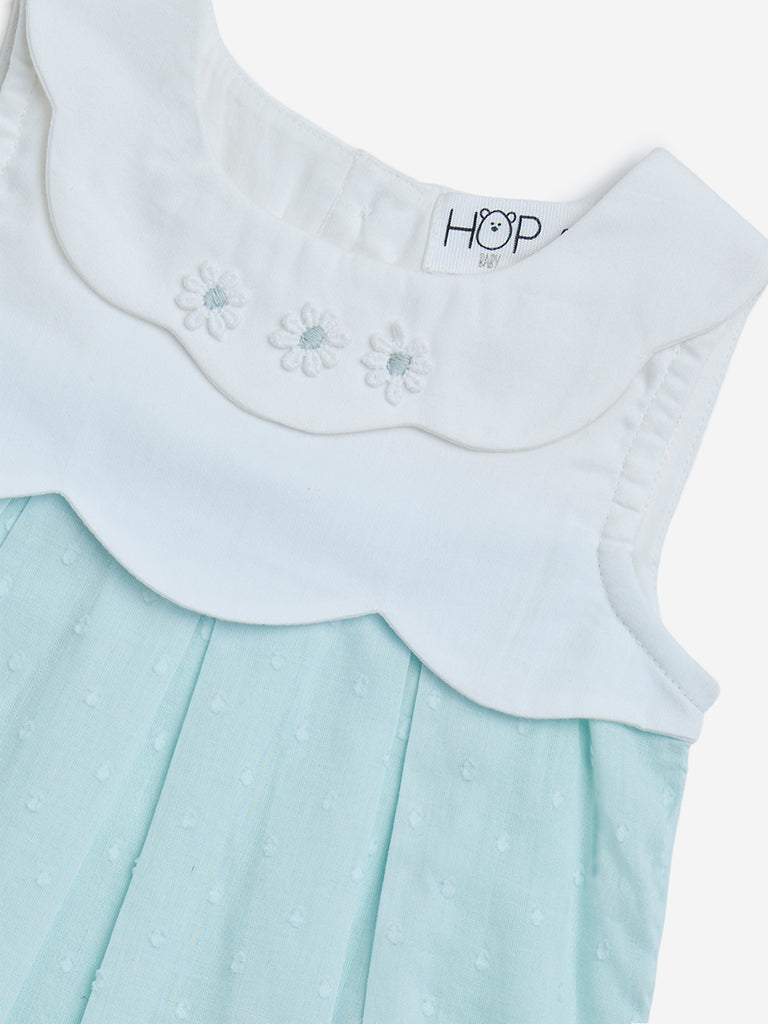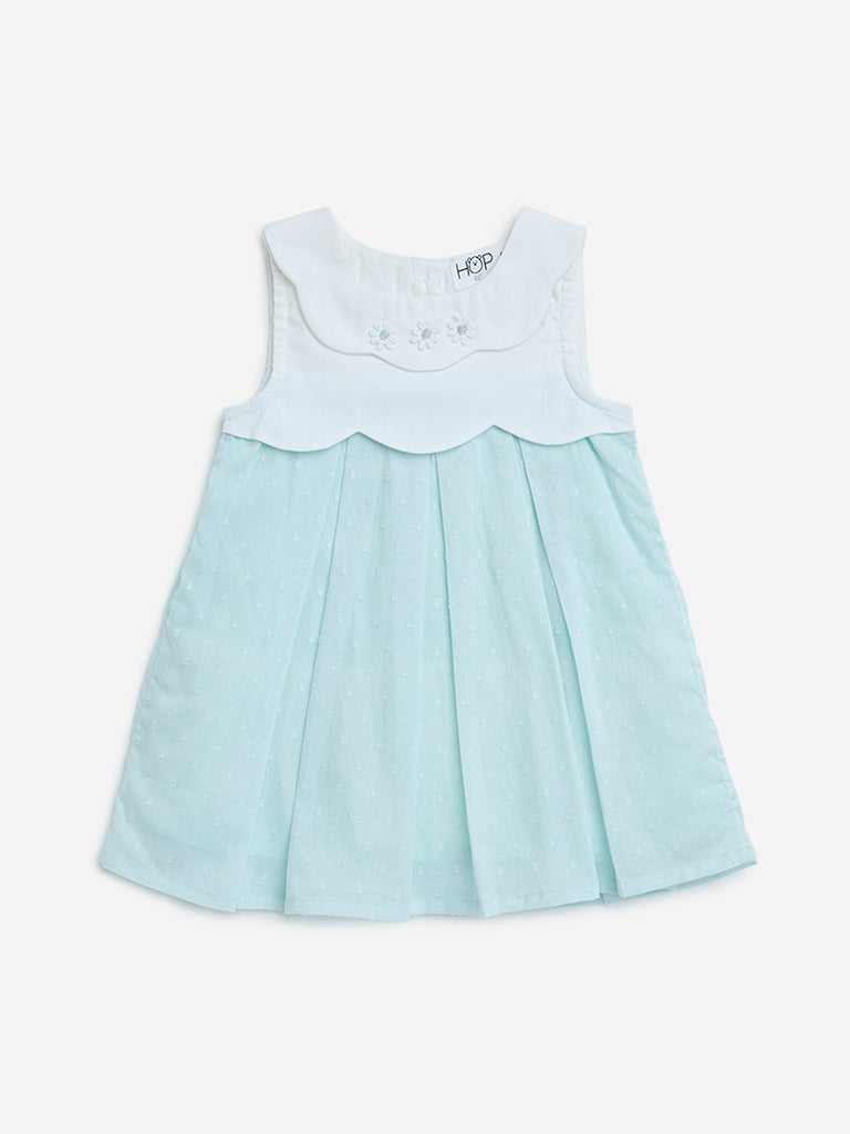 HOP Baby Mint Swiss-Dot Embroidered A-Line Cotton Dress