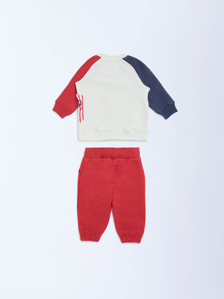 HOP Baby Multicolour Colour-Blocked Cotton-Blend Sweatshirt and Pants Set