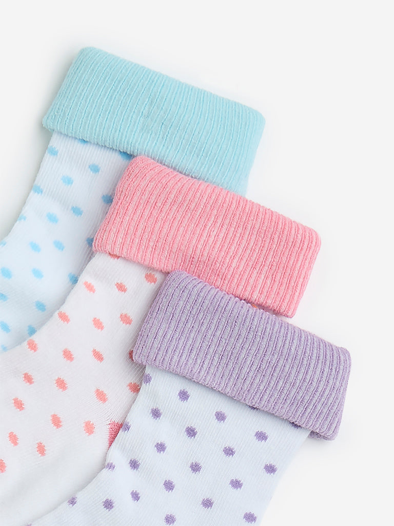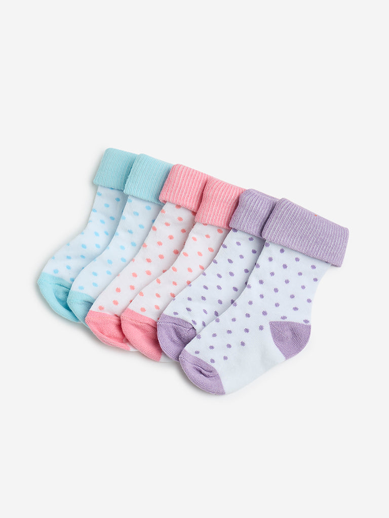 HOP Baby Multicolour Polka Dotted Cotton-Blend Socks – Pack of 3