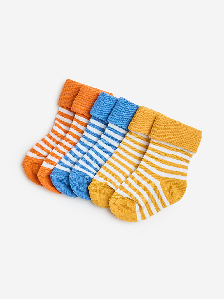 HOP Baby Multicolour Striped Cotton-Blend Socks – Pack of 3