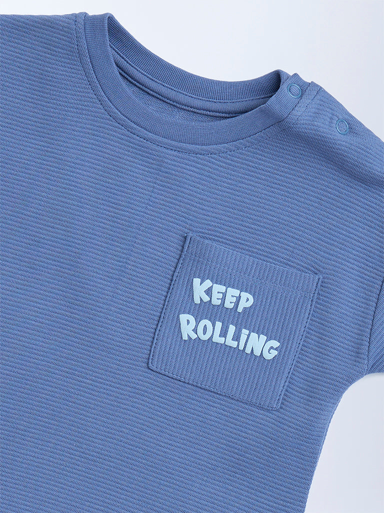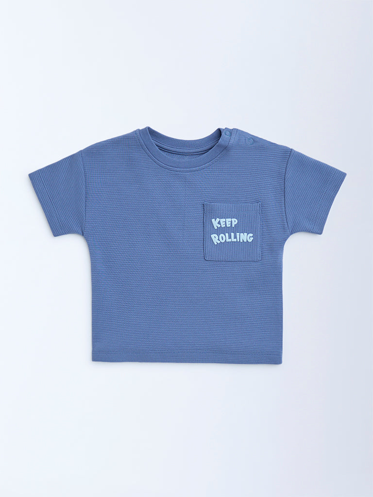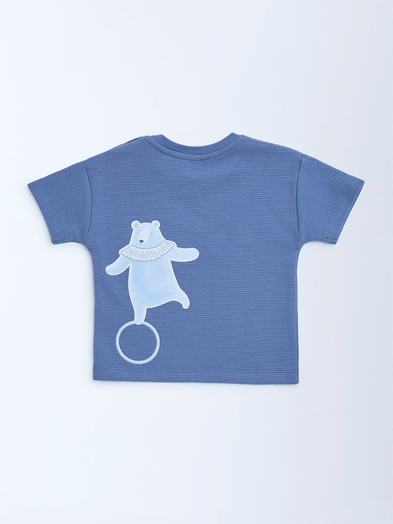 This navy blue t-shirt from HOP Baby is a playful pick for little wardrobes. Spun from pure cotton. it’s designed with a round neck and short sleeves. while a front patch pocket showcases text prints. The back is brought to life with charming polar bear embroidery. adding a sweet twist to a staple piece.