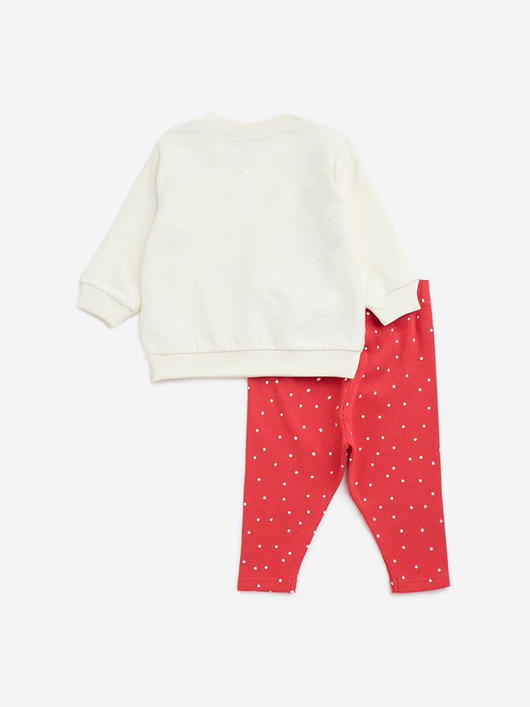 HOP Baby Off-White Applique Detail Cotton Top and Pants Set