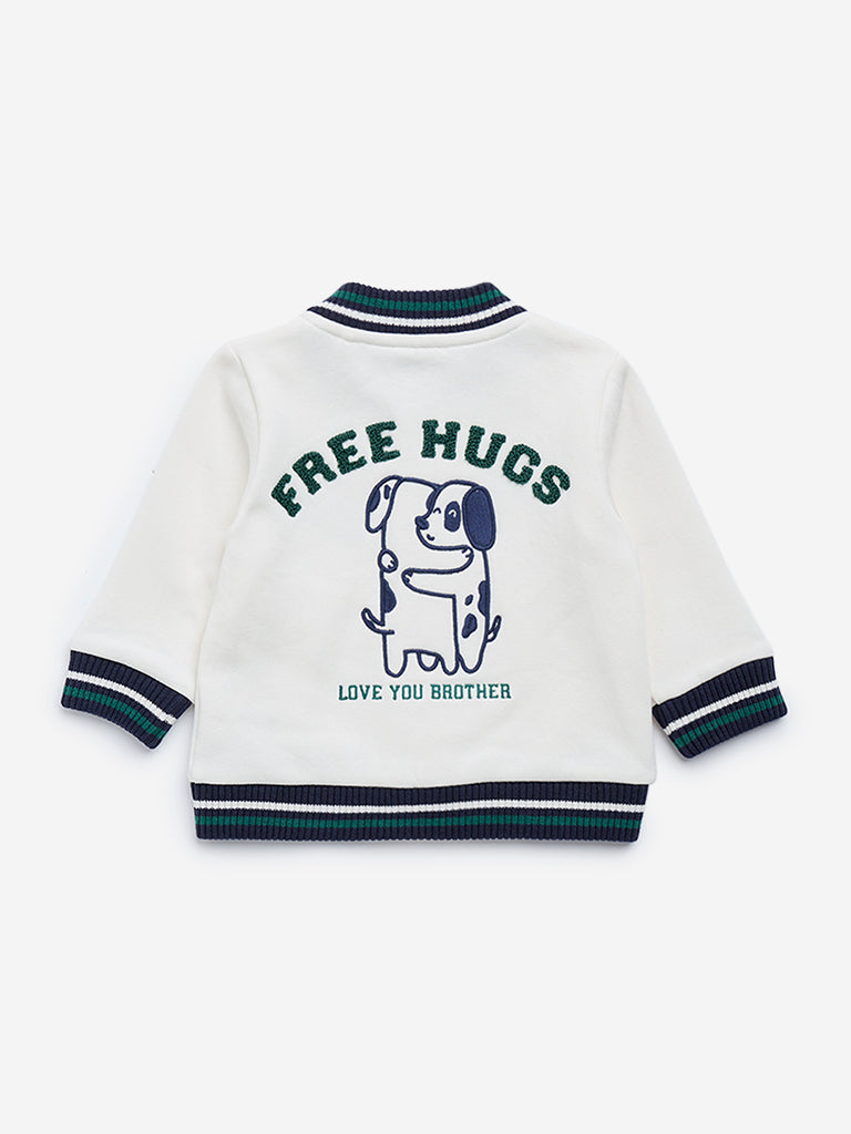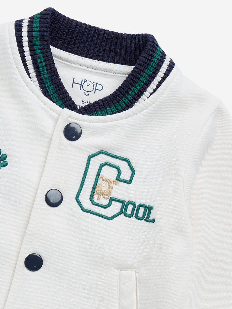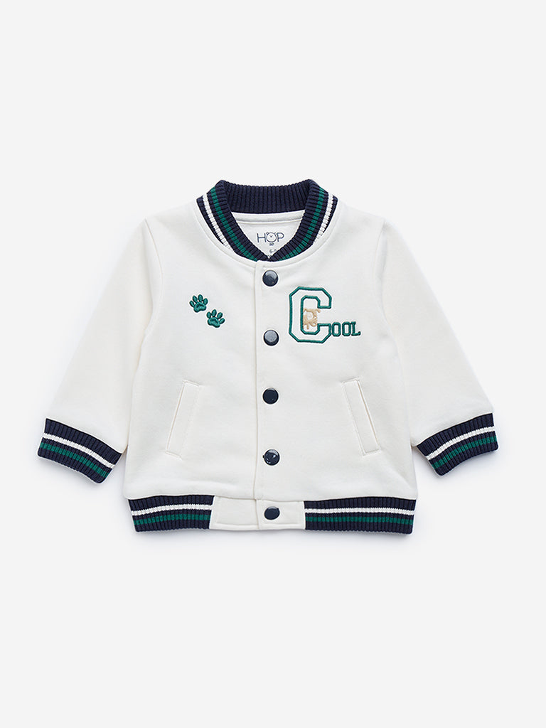 HOP Baby Off-White Cotton-Blend Varsity Jacket