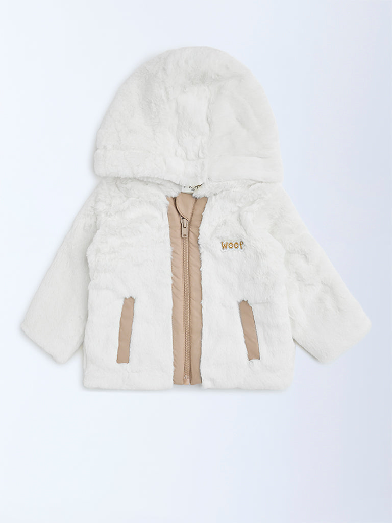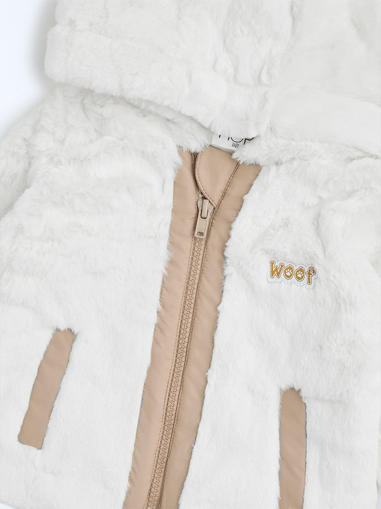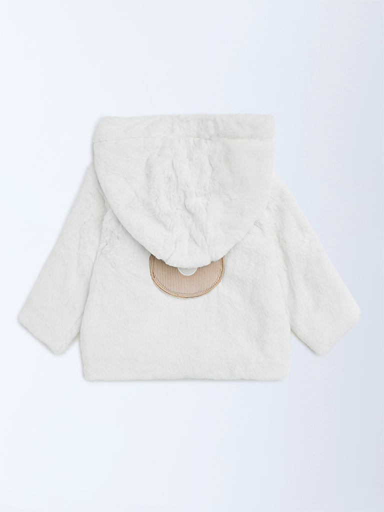 Soft. warm and irresistibly cute. this off-white jacket from HOP Baby is crafted in plush faux-fur for gentle comfort. Designed with a hood. zipper placket and kangaroo pockets. it is finished with a sweet teddy motif at the back. making it a delightful layer to keep little ones snug on chilly days.