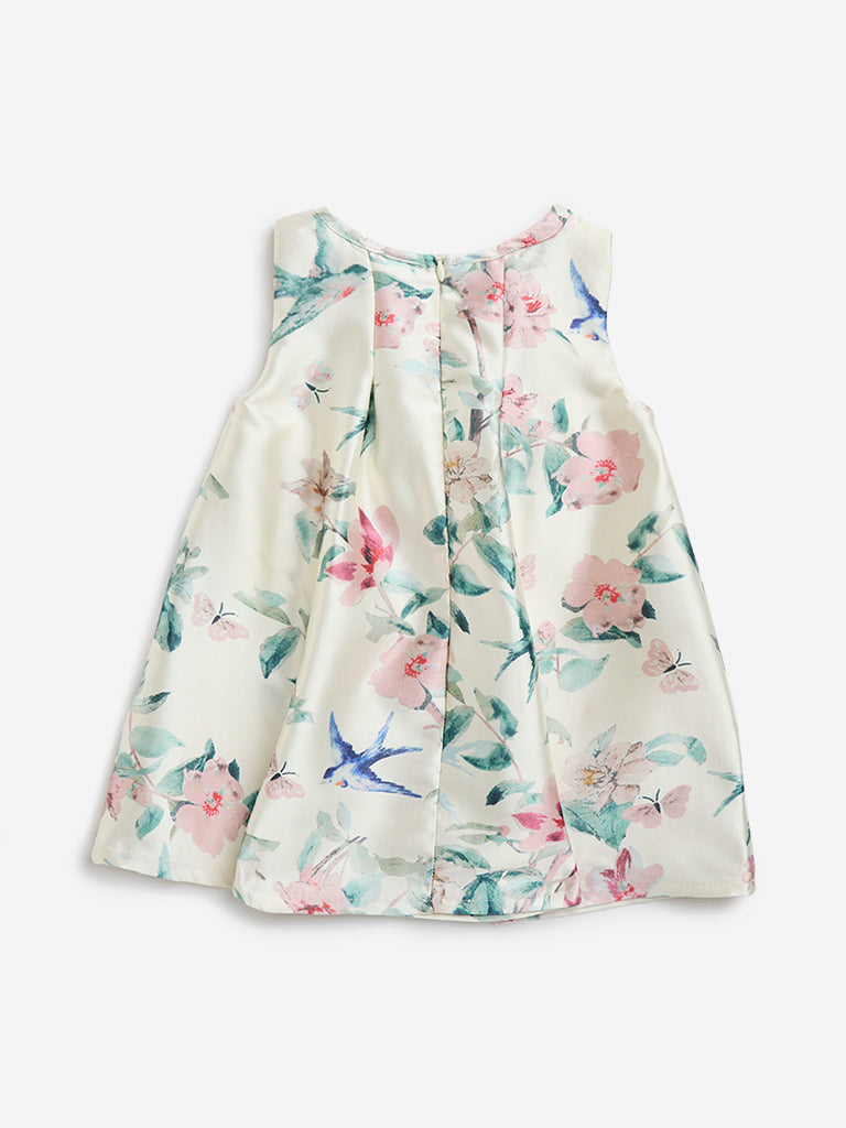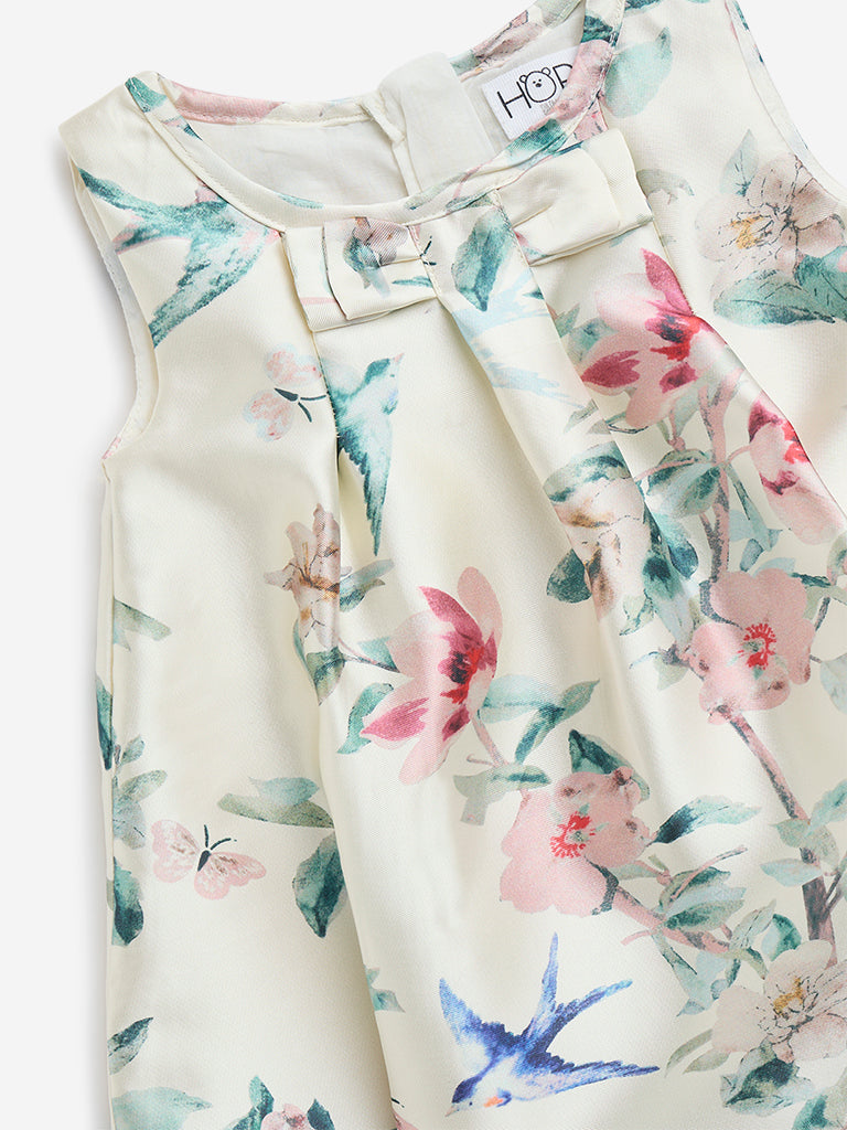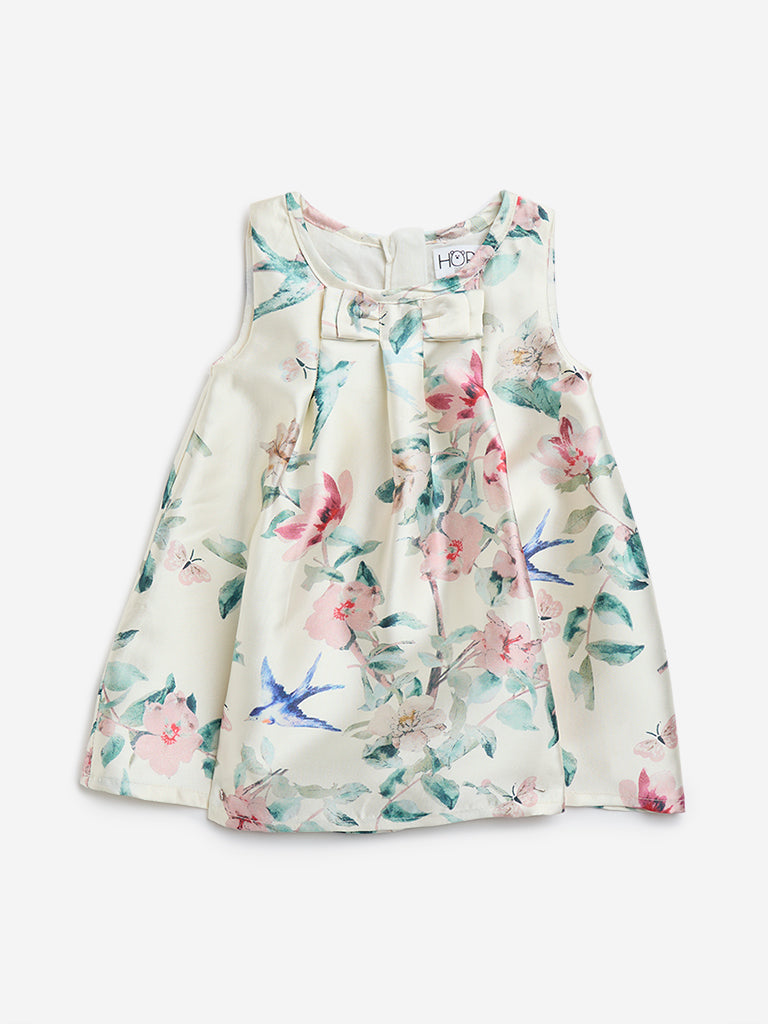 This off-white dress from HOP Baby flaunts floral designs. Milled from a breathable fabric. it includes a crewneck and sleeveless design. The bow detailing at the front enhances its appeal.