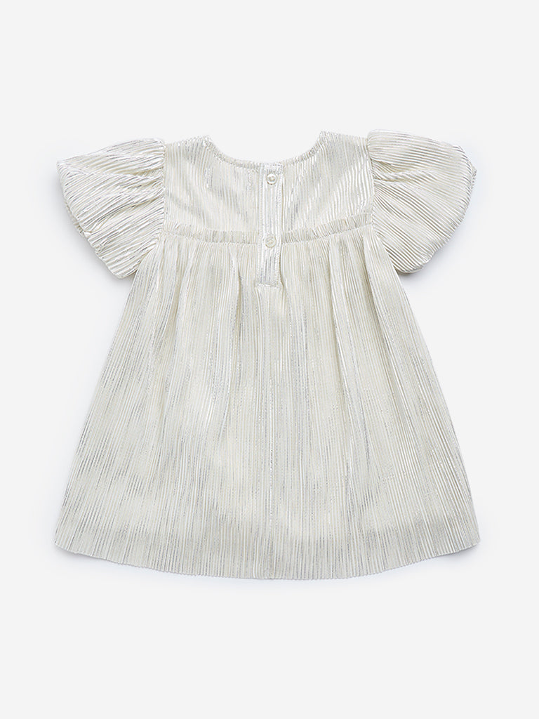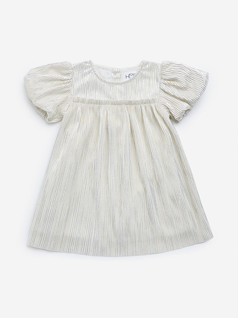 This elegant off-white dress from HOP Baby features delicate plissing and puffed sleeves. creating a timeless. classic look. Crafted from soft. comfortable fabric. it’s perfect for any special occasion for your little one.