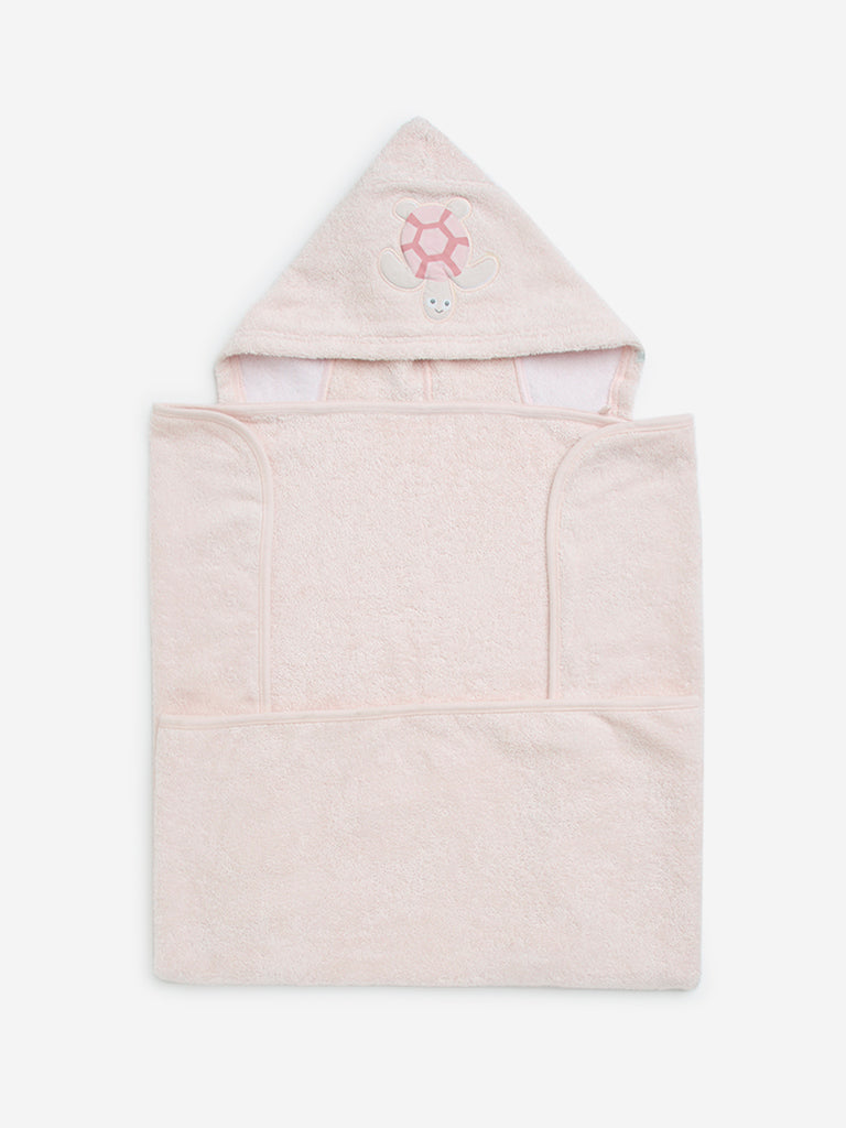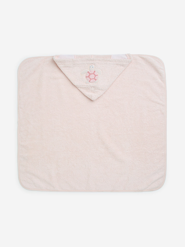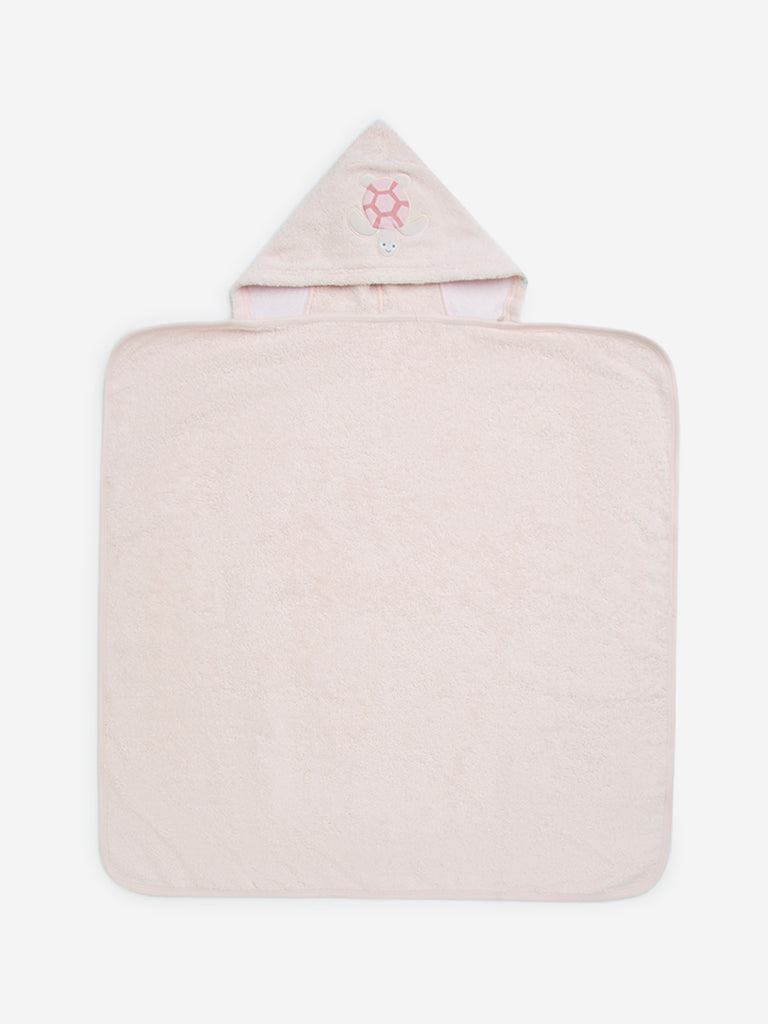 HOP Baby presents this pink blanket. designed to keep your little one warm and cozy. Built from pure cotton. it features a plush faux fur lining for a soft and breathable feel. The attached hoodie is adorned with a playful tortoise-printed motif. making it a charming companion for naptime or travel.
