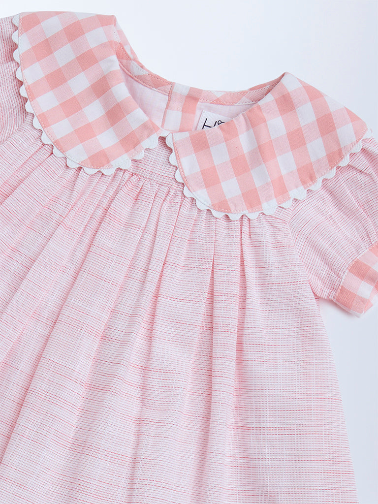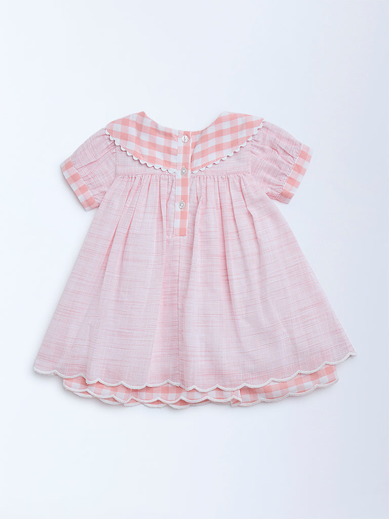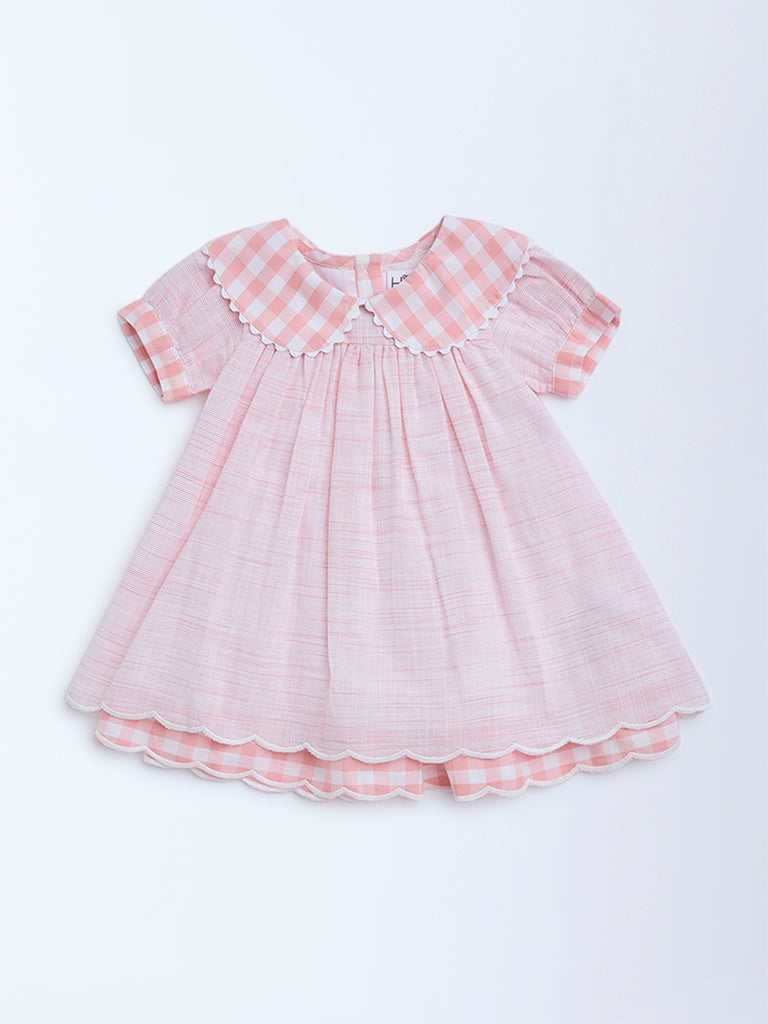 HOP Baby Pink Checks Design Cotton A-Line Dress