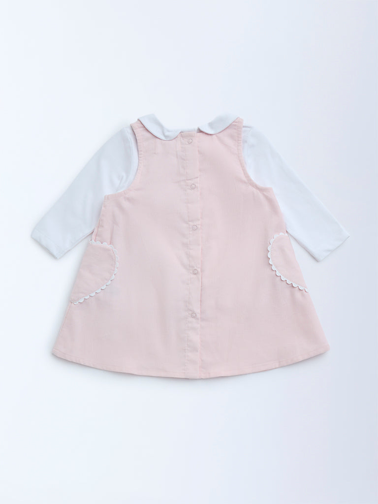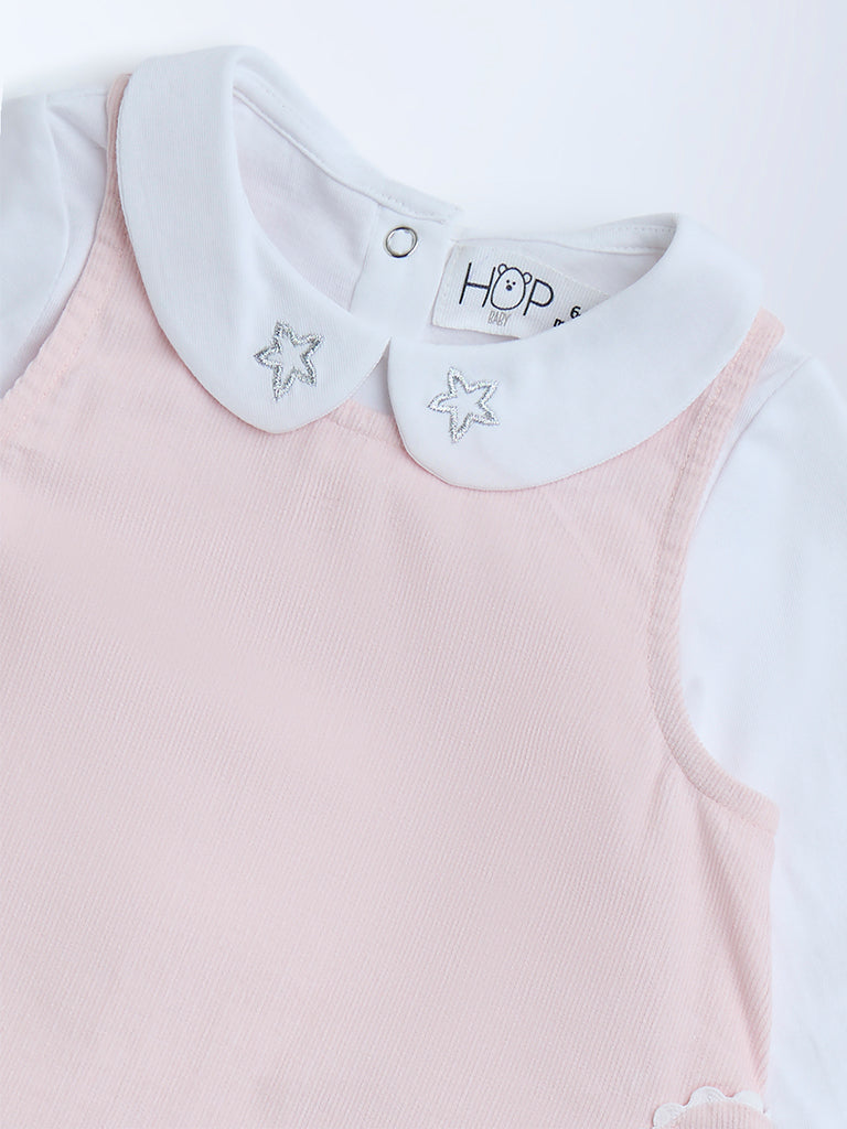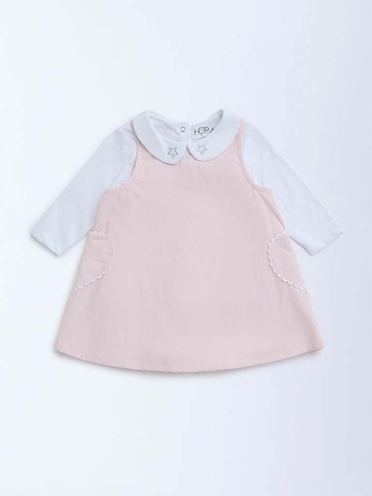 HOP Baby Pink Cotton Pinafore with T-Shirt Set
