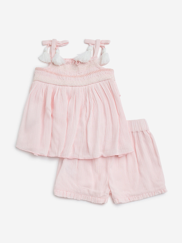 HOP Baby Pink Crinkle Textured Top with Shorts Set