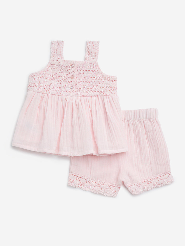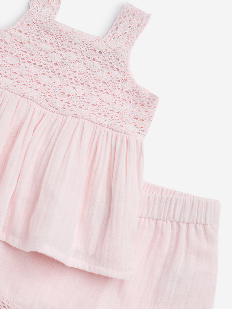 HOP Baby Pink Crochet-Detailed Cotton Top and Shorts Set