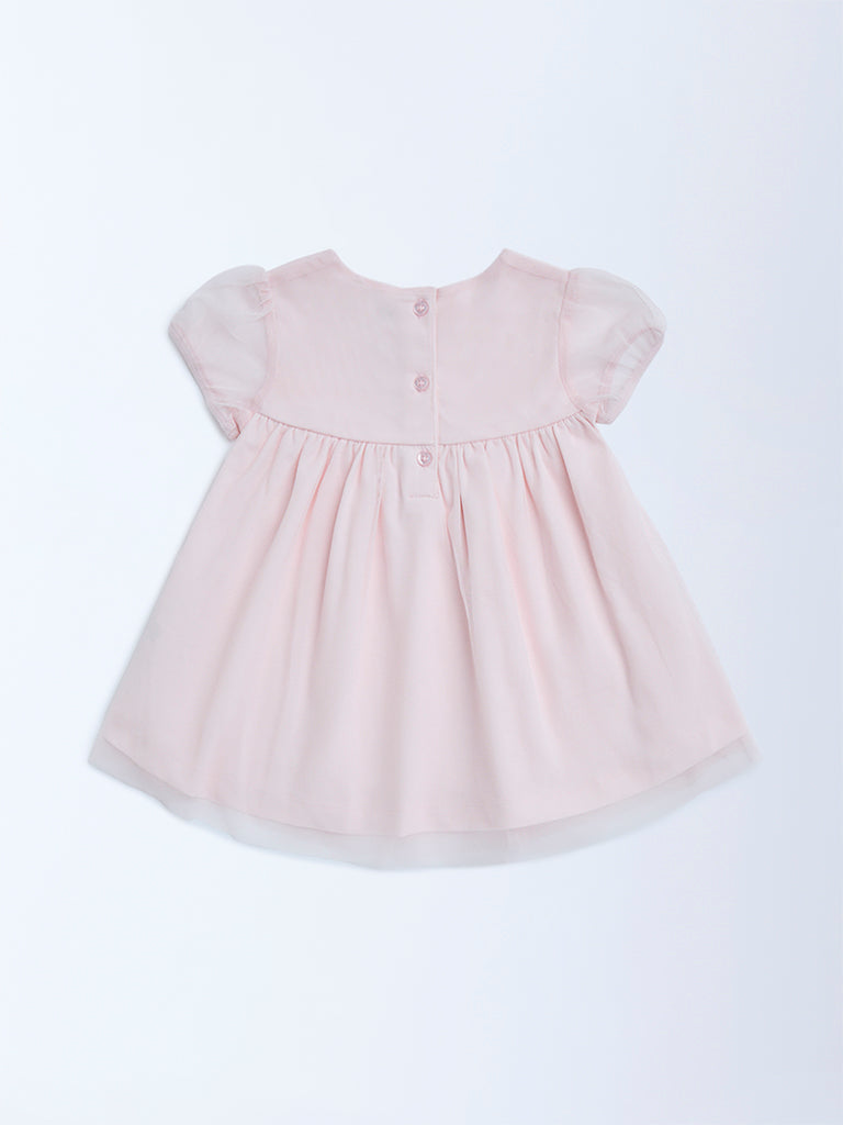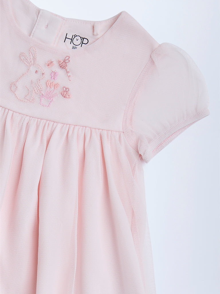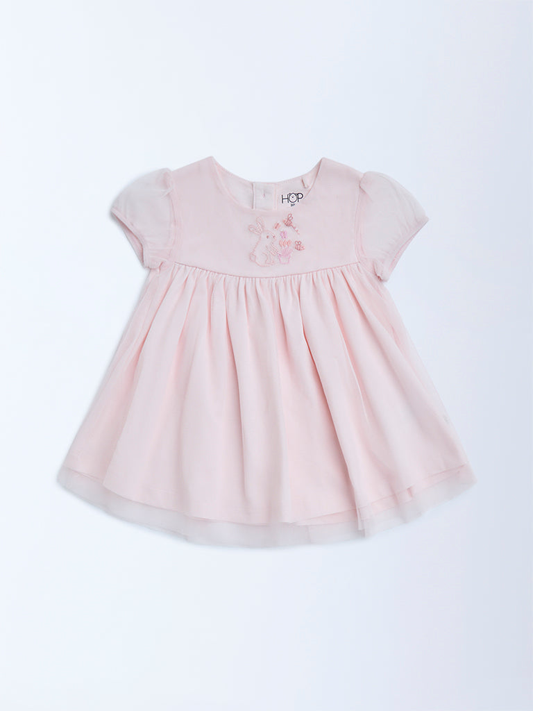 HOP Baby Pink Embroidered Cotton A-Line Dress