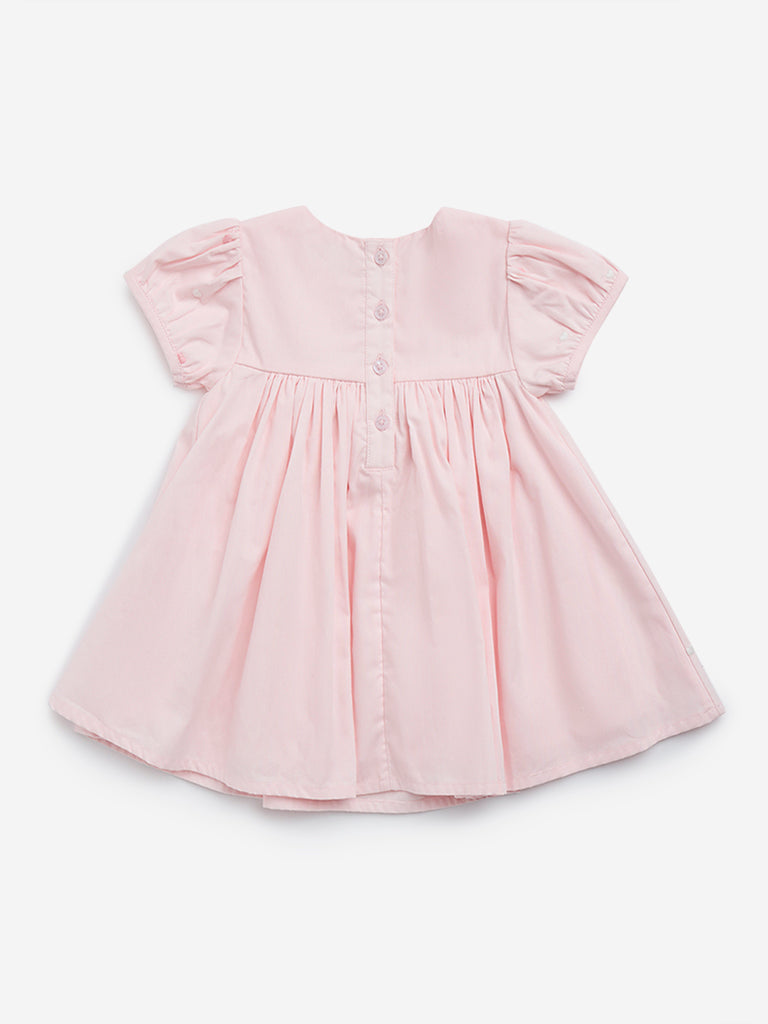 HOP Baby Pink Embroidered Cotton A-Line Dress
