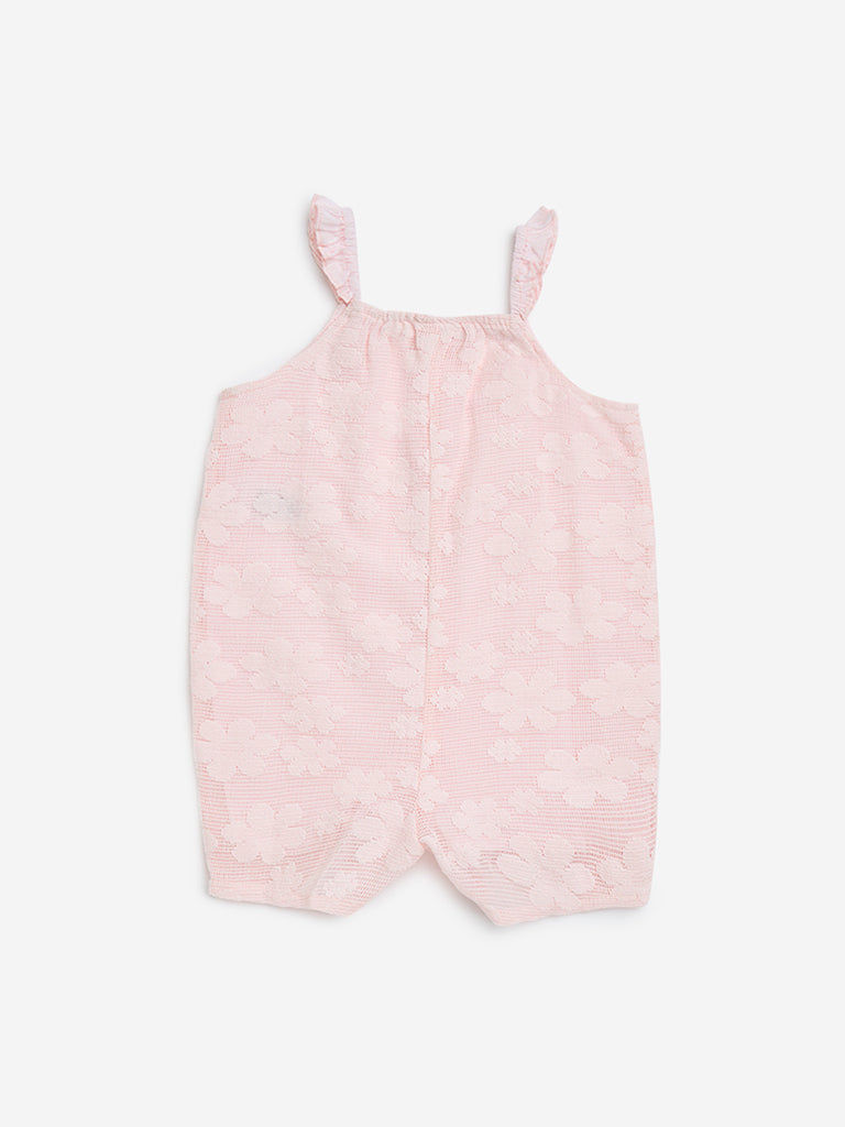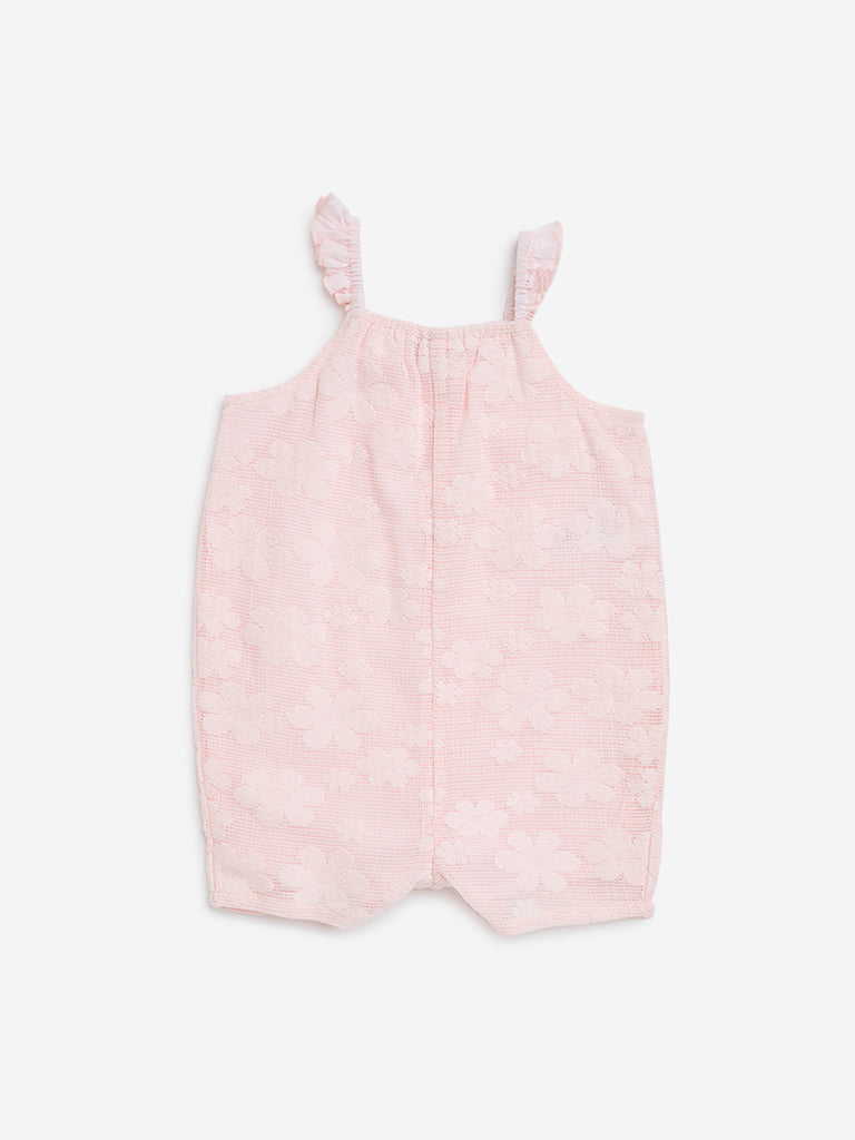 HOP Baby Pink Floral Design Cotton-Blend Dungaree