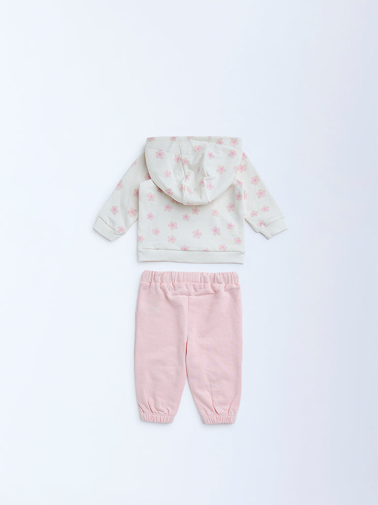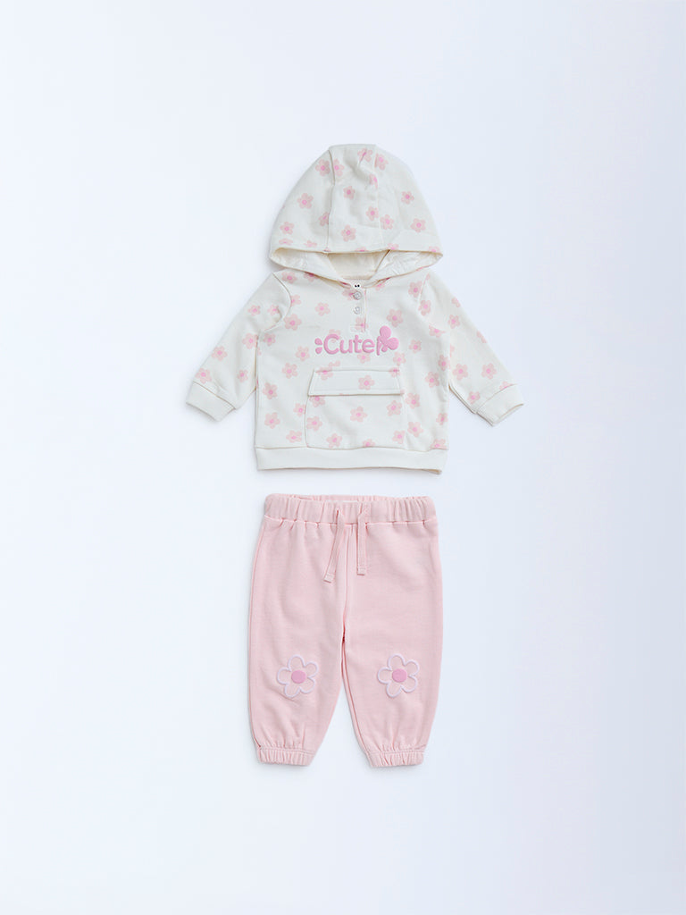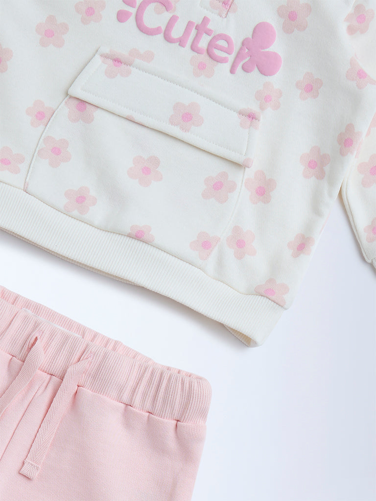 HOP Baby Pink Floral Design Cotton Sweatshirt with Joggers Set