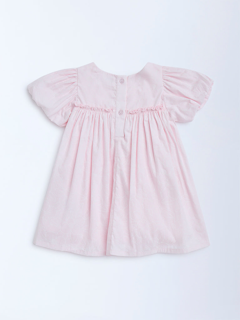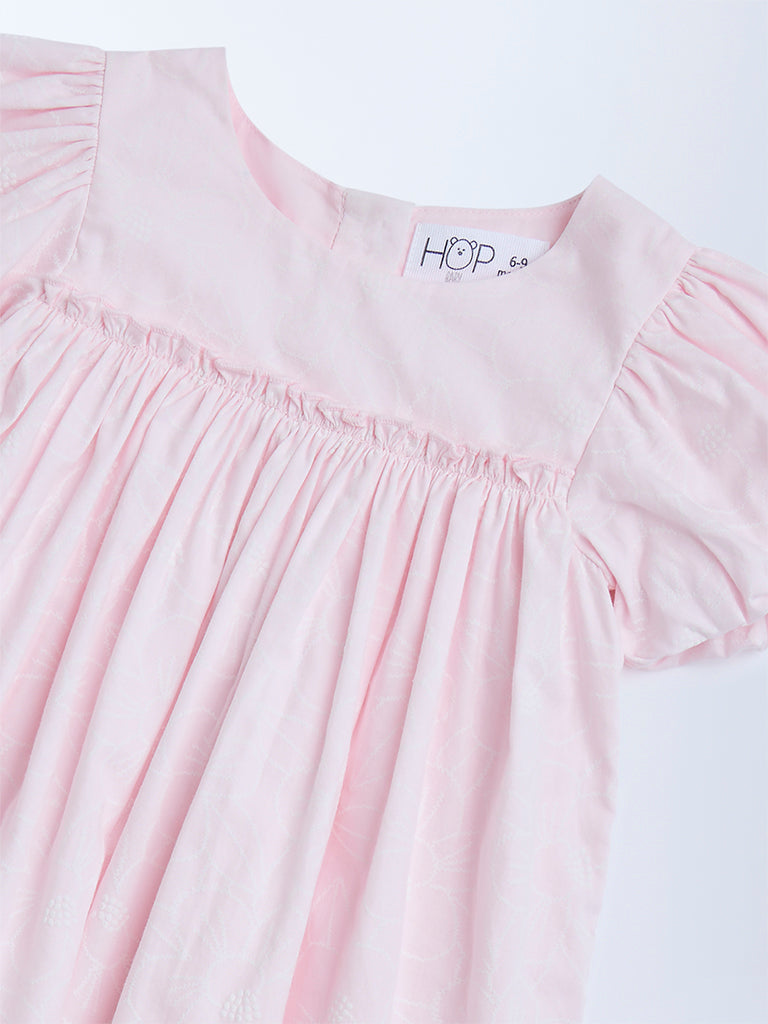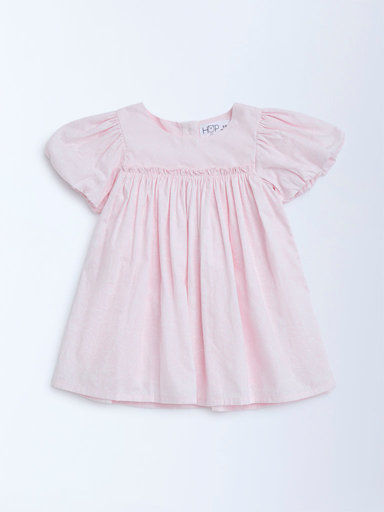 HOP Baby Pink Floral Embroidered Cotton A-Line Dress