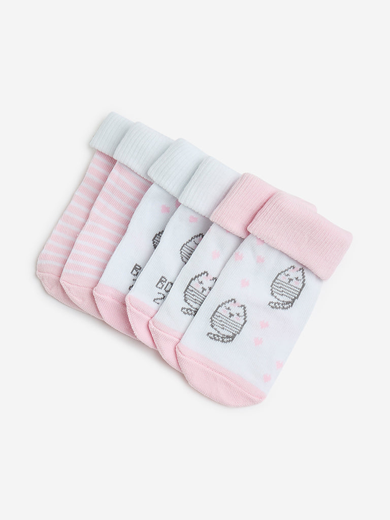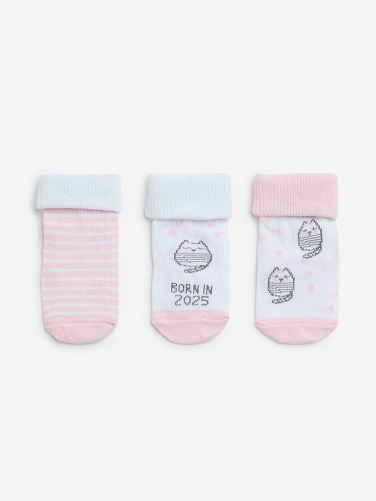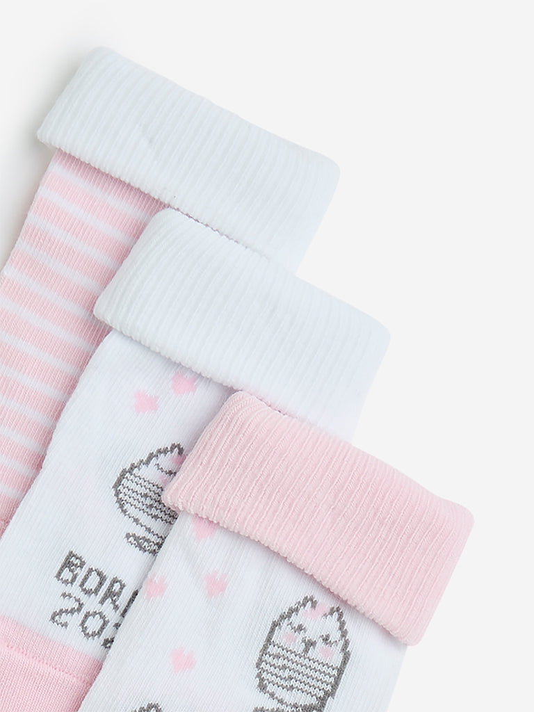 HOP Baby Pink Printed Cotton-Blend Socks – Pack of 3