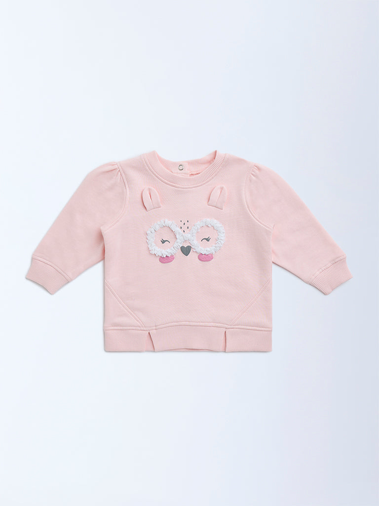 Wrap your little one in cozy charm with this pink sweatshirt from HOP Baby. featuring playful prints on the front that spark delight. Spun from pure cotton. it is designed with a snug crew neck and full sleeves for all-day comfort. while a button closure at the back offers a secure fit.