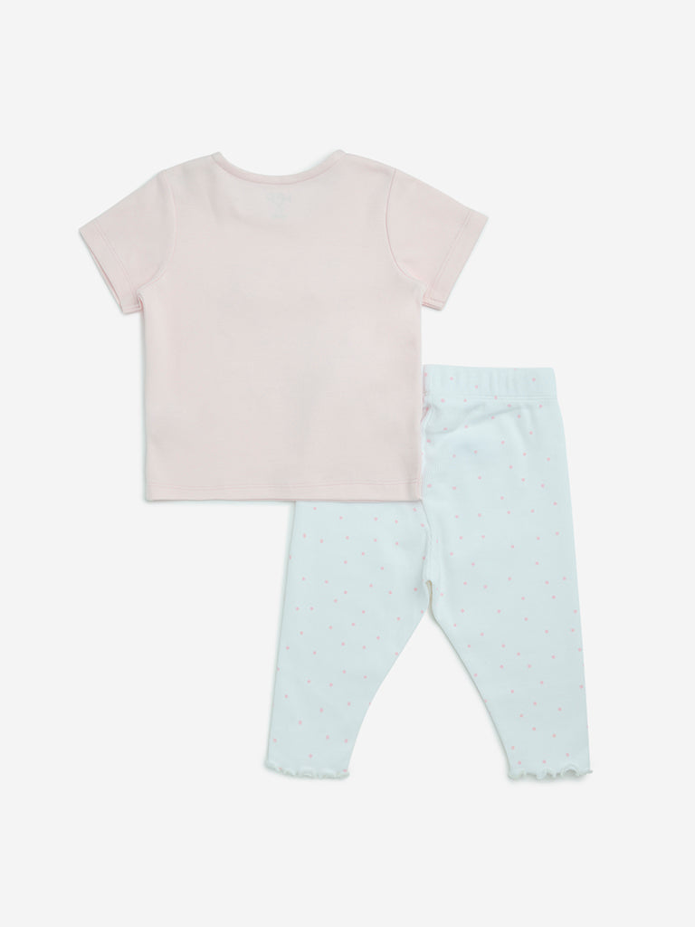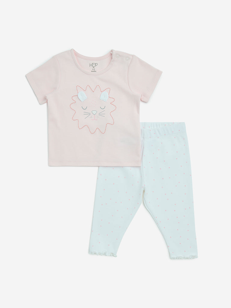HOP Baby Pink Printed Cotton T-Shirt and Pants Set