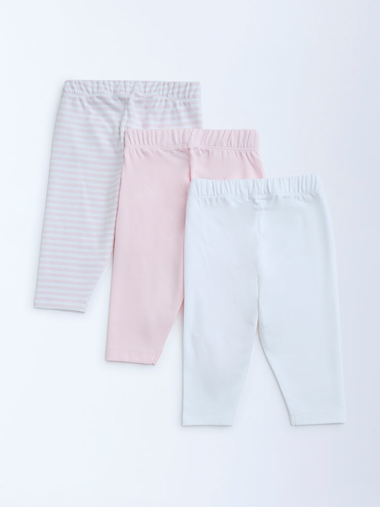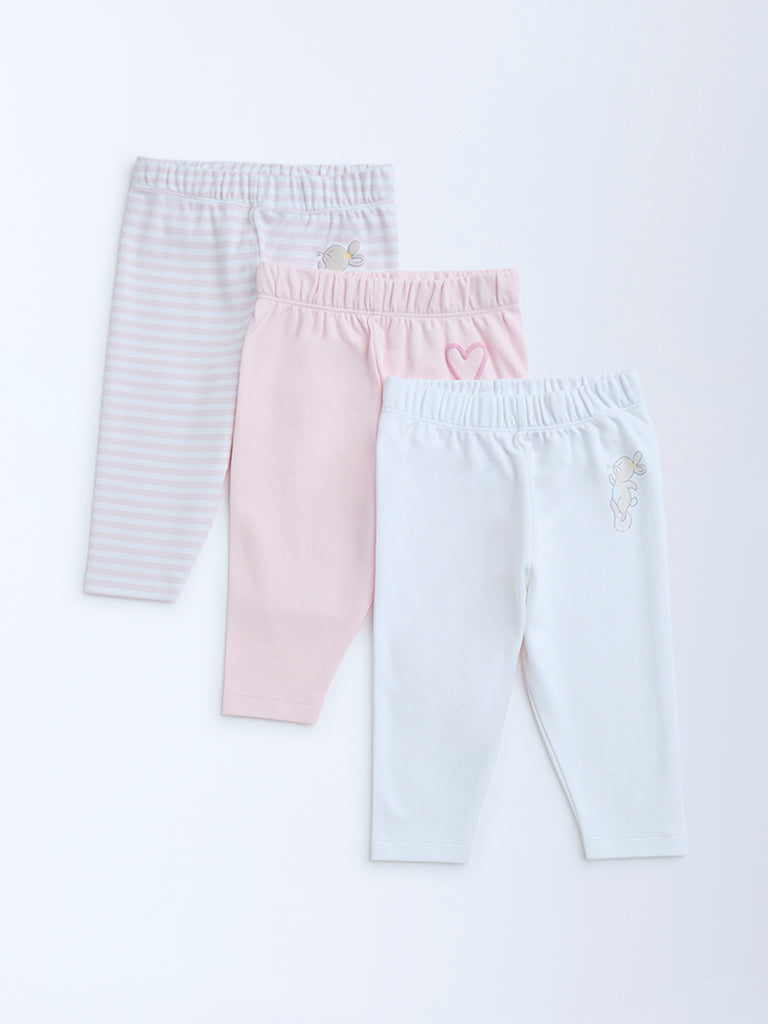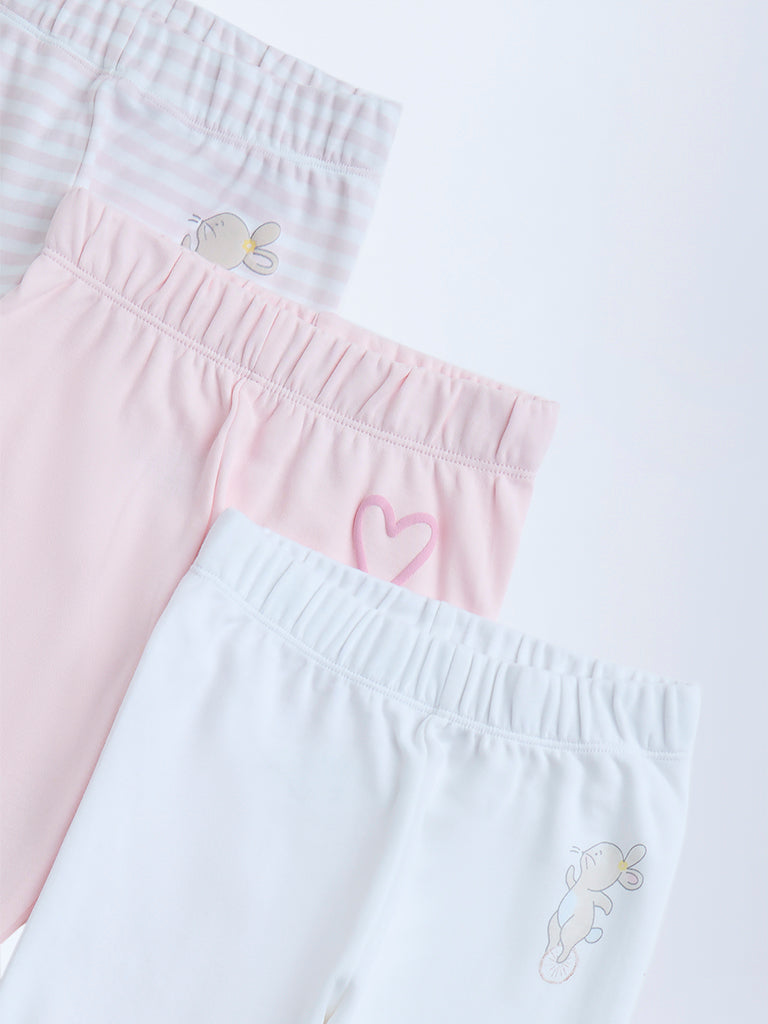 HOP Baby Pink Printed Mid-Rise Cotton Pants – Pack of 3
