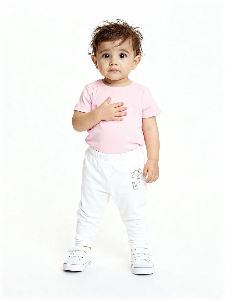 Mix and match her everyday outfits with ease in this three-piece pants set from HOP Baby. The pack includes a pink pair with a sweet heart outline. an off-white style with a playful animal print. and a striped option for added variety. Each pair is made from pure cotton and finished with a soft elasticated waistband that ensures a snug fit. keeping little ones comfy all day.